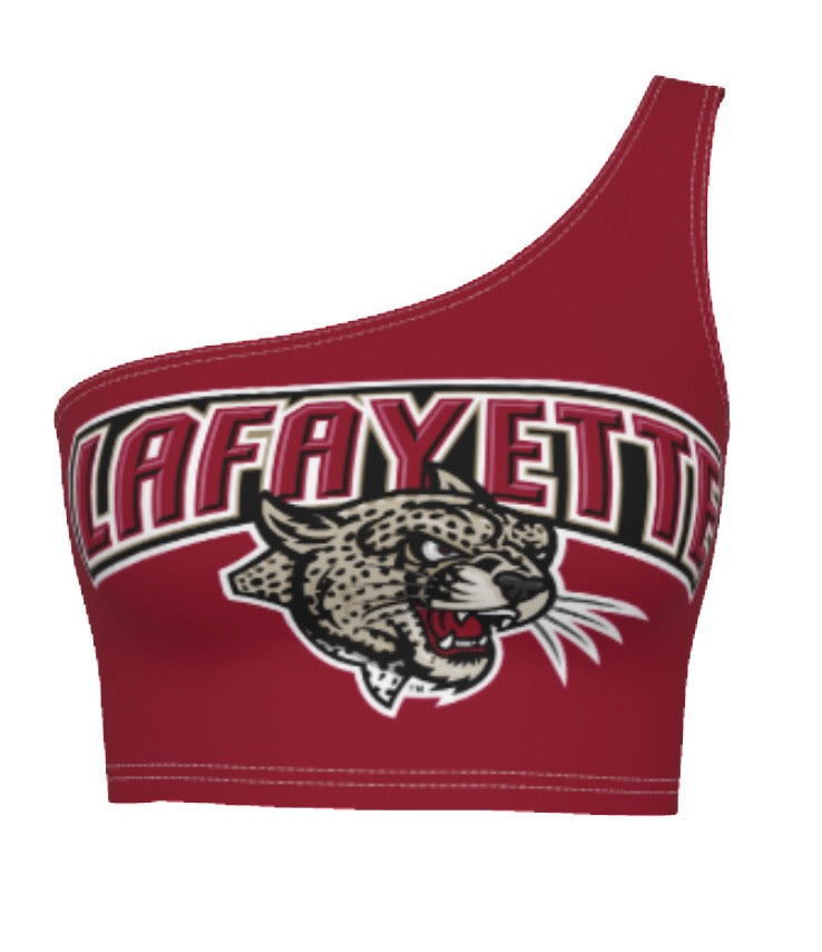 This super flattering Lafayette College Lightning One Shoulder Top is perfect for college game day! Our Lafayette College One Shoulder Top's stretchy fabric makes it the perfect option for all body types. You'll never want to take this adorable one shoulder top off! Go Leopards!