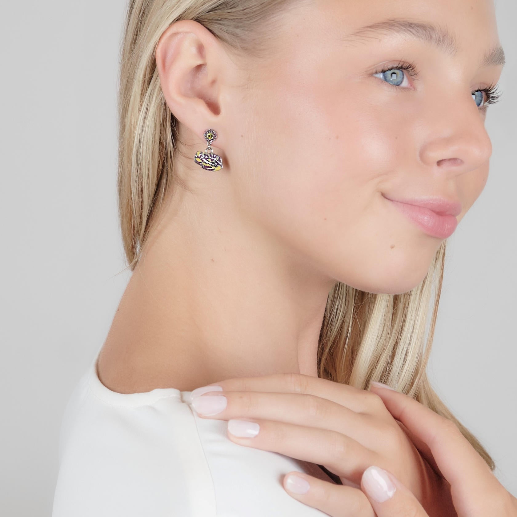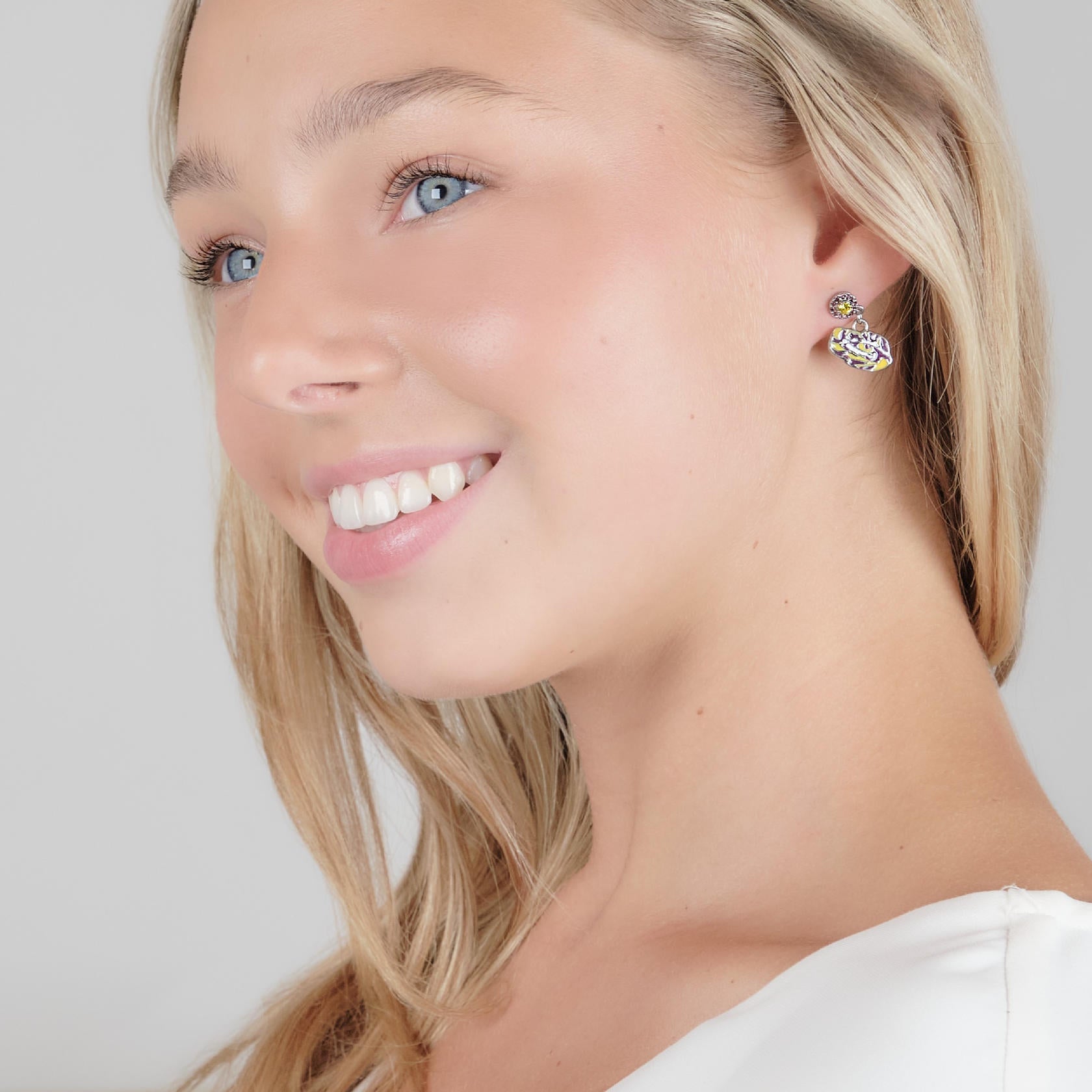 - 💜Treasure Your LSU Tiger Spirit - These Stone Armory Louisiana State University earrings are full of Tiger pride! Featuring a purple and gold tiger eye design dangling from matching crystals, these classic Tiger earrings are just as unique as you. Geaux Tigers!