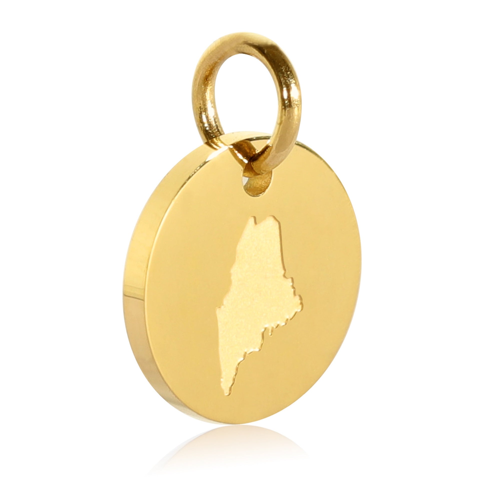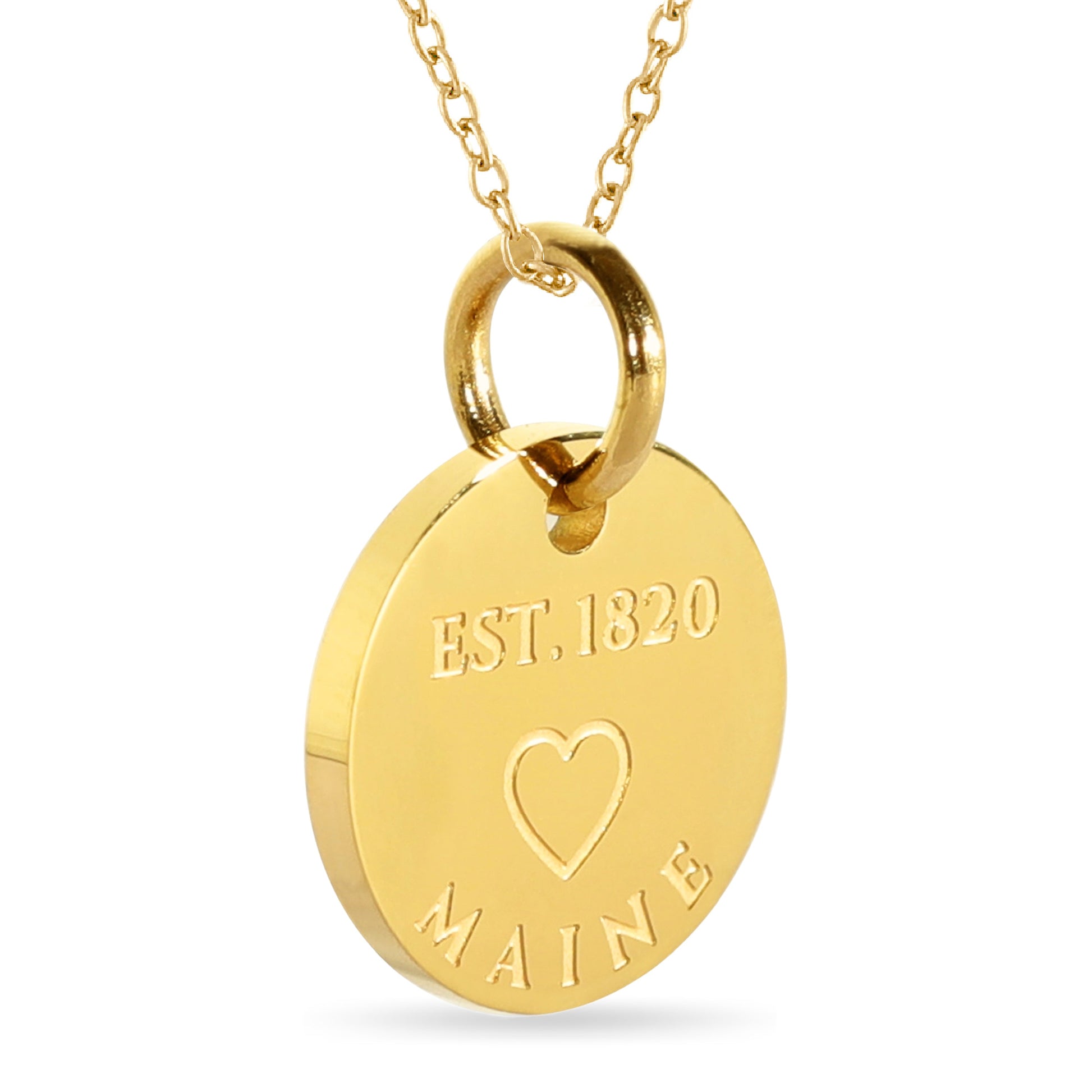 Maine Map Engraved Charm Necklace - 18K Gold Plate