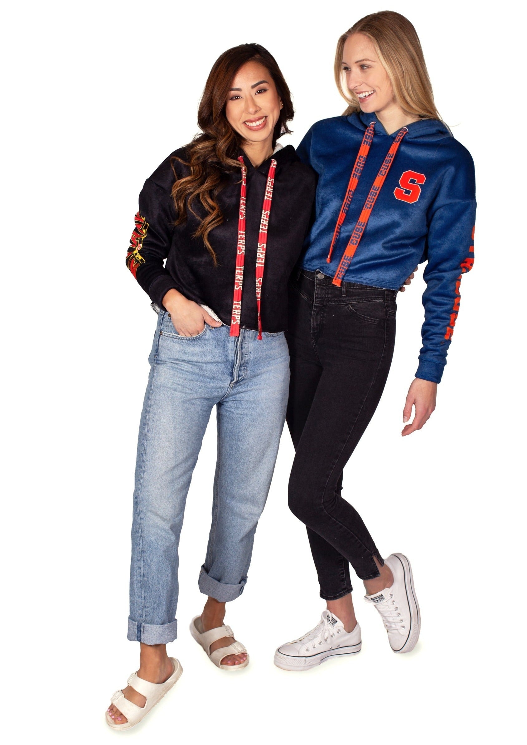 This super flattering Maryland Terps Black Varsity Furry Hoodie is perfect for college game day! Our University of Maryland Varsity Furry Hoodie's soft and plush fabric makes it the most comfortable sweatshirt to wear anytime. You will never want to take this ultra soft hoodie - soft exterior with a super soft and fluffy sherpa fabric inside the entire hoodie. The high quality fabric and design will make this hoodie your all time favorite for years to come!