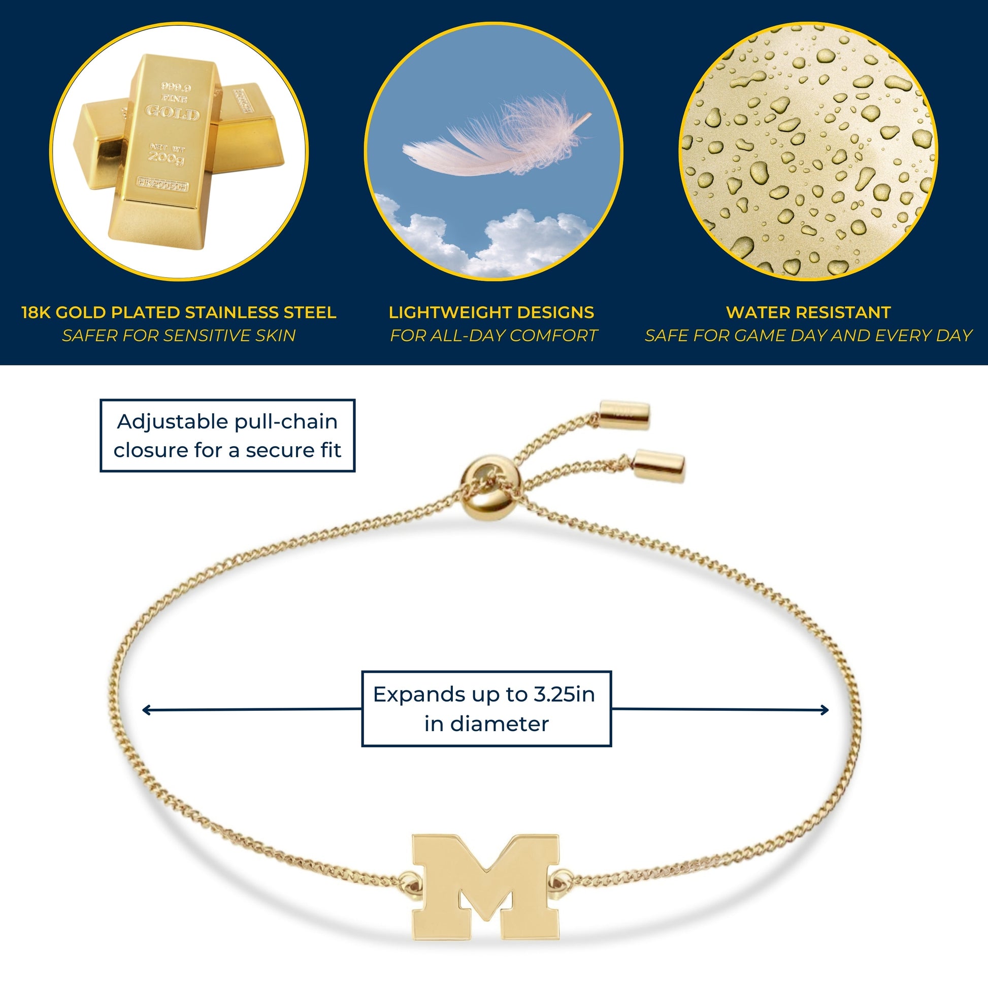 - Treasure Your Michigan Wolverines Spirit: This Stone Armory University of Michigan pull chain bracelet is officially licensed; sport this classic gold University of Michigan womens bracelet to show off your UM Wolverine pride