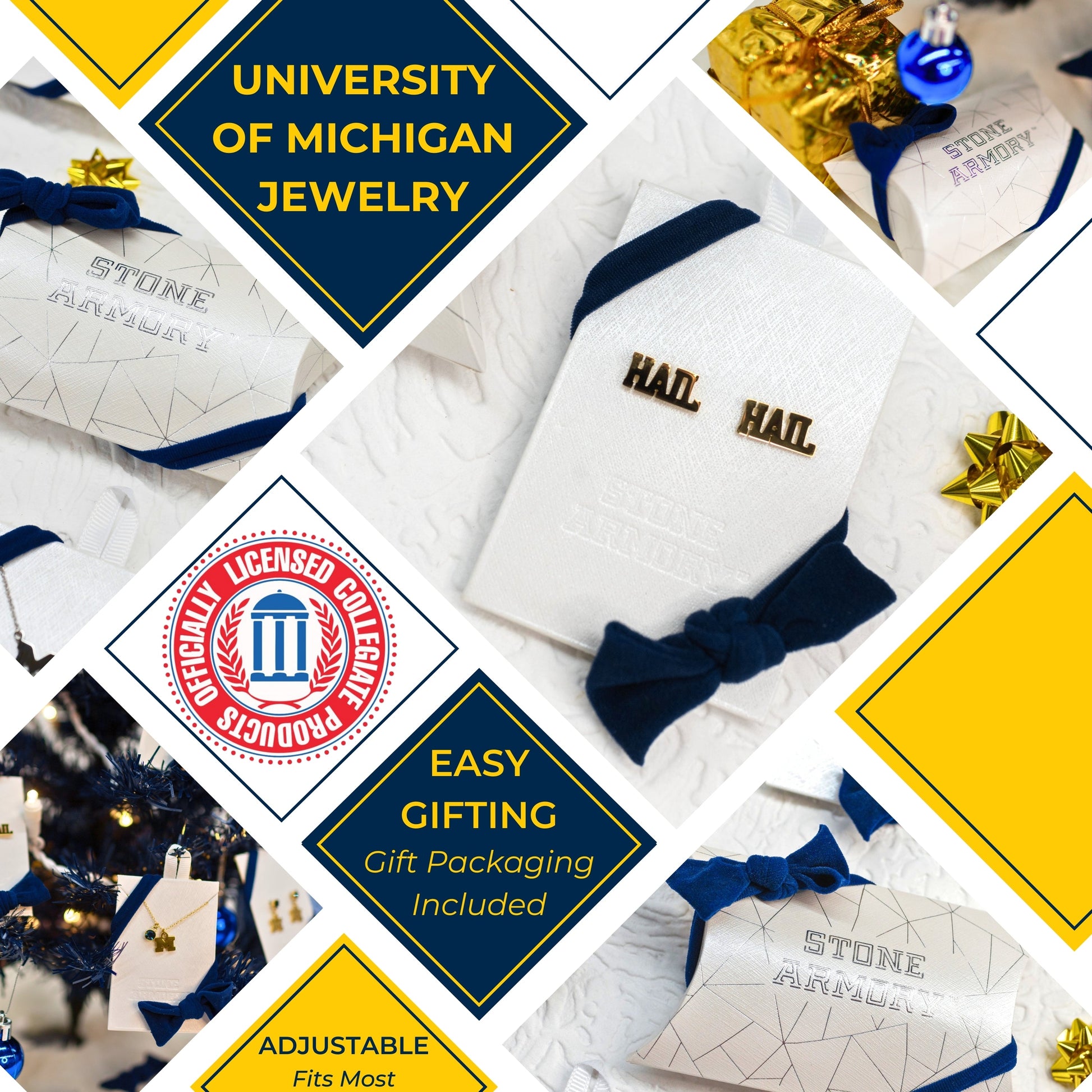 - 💙TREASURE YOUR Michigan Wolverines SPIRIT: These Stone Armory University of Michigan earrings are officially licensed. Classic Michigan HAIL stud earrings to show off your UM Wolverine pride.