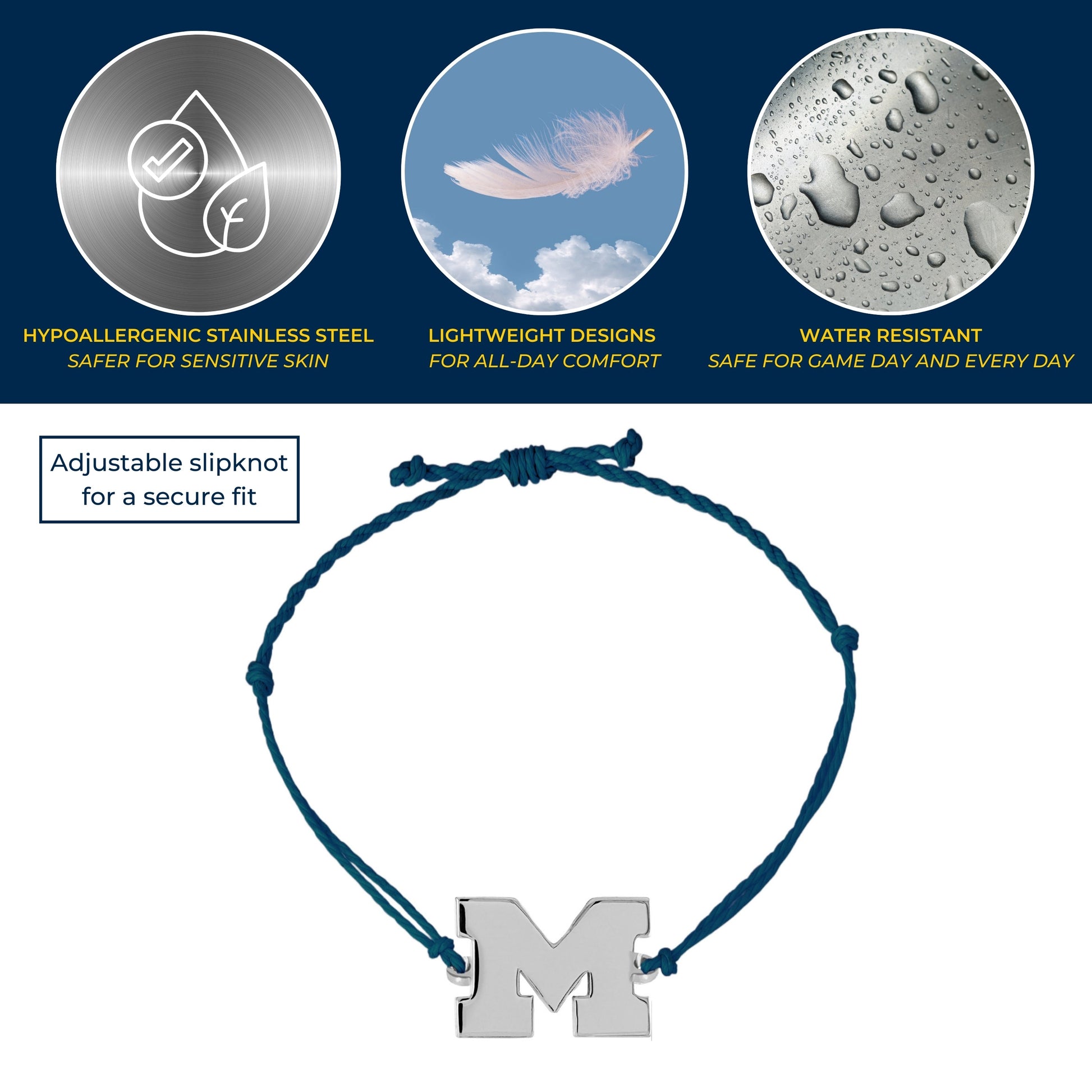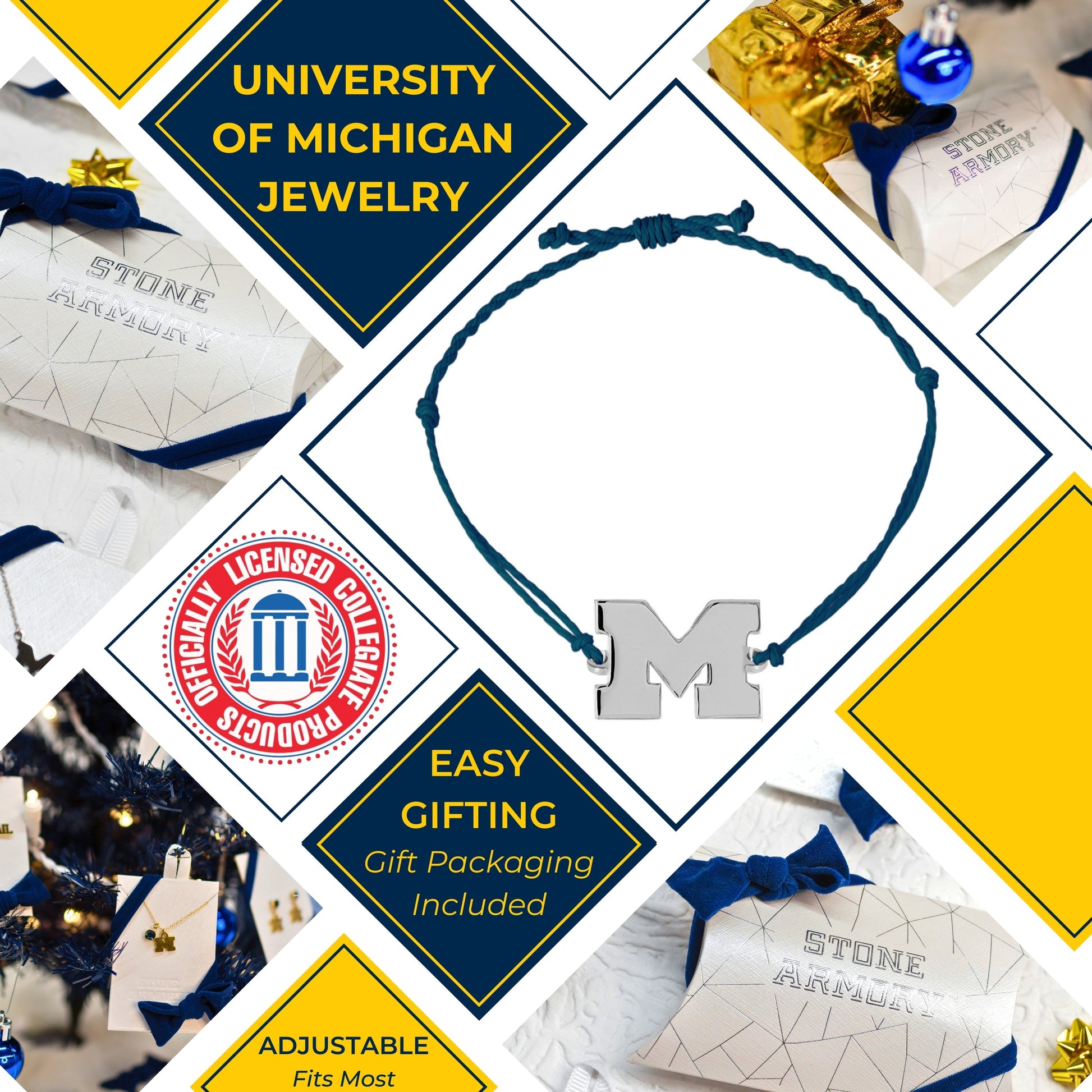 - Sport your Wolverine Spirit in Style with this Exquisitely Crafted Michigan Bracelet : Treasure your Michigan Wolverine Spirit with this Michigan adjustable cord bracelet for women and men; this University of Michigan bracelet features a Block M on a blue cord bracelet
