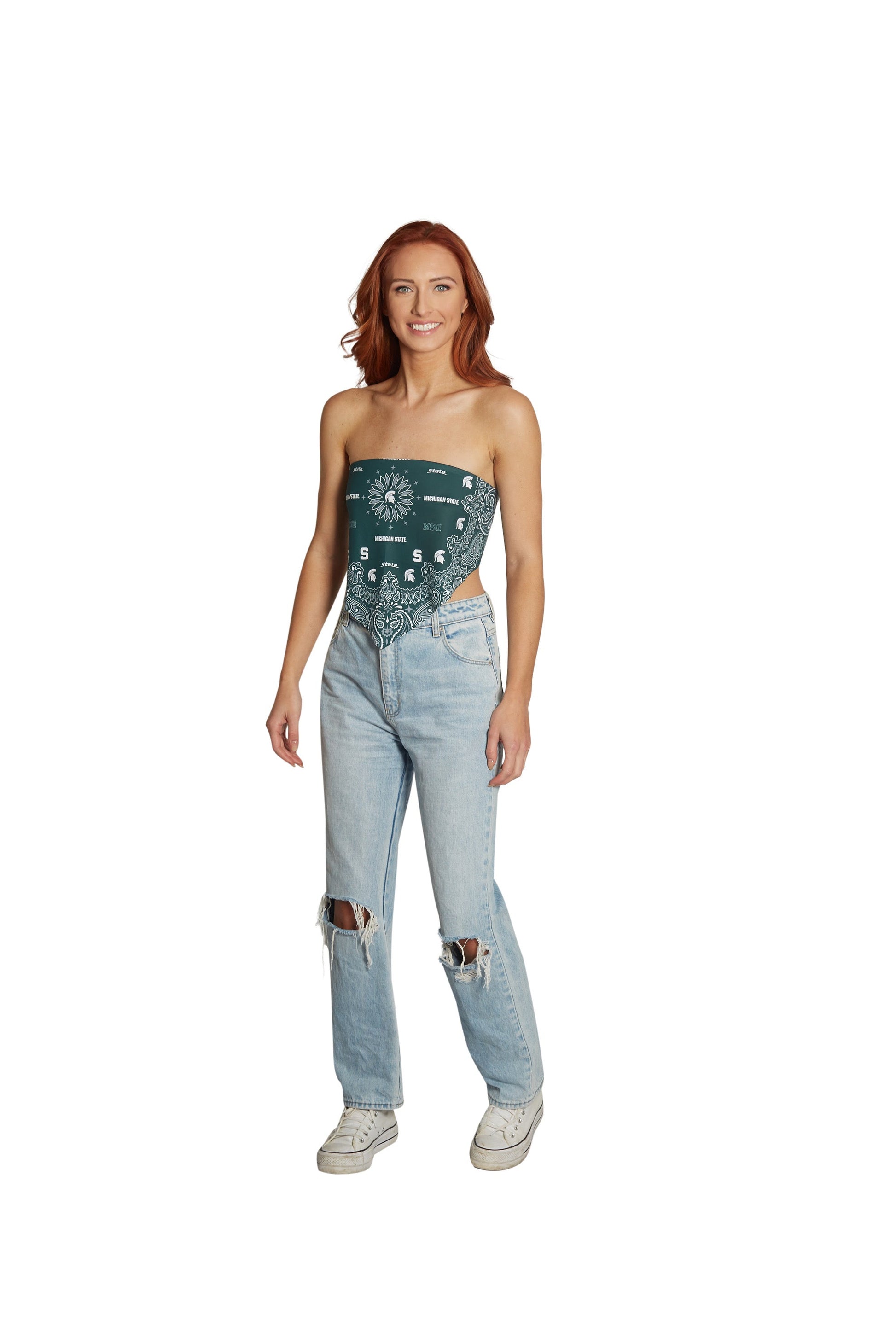 The must have top for all Michigan State Spartans! Our super flattering Michigan State Bandana Top is the perfect top for all occasions. With double lining and and an adjustable tie back, this top provides side coverage and a second layer of lining to make this a perfect fit! Our top's soft and stretchy material will make you never want to take it off! Pair with your favorite pair of jeans or our Michigan State Game Day Skirt for the cutest outfit!