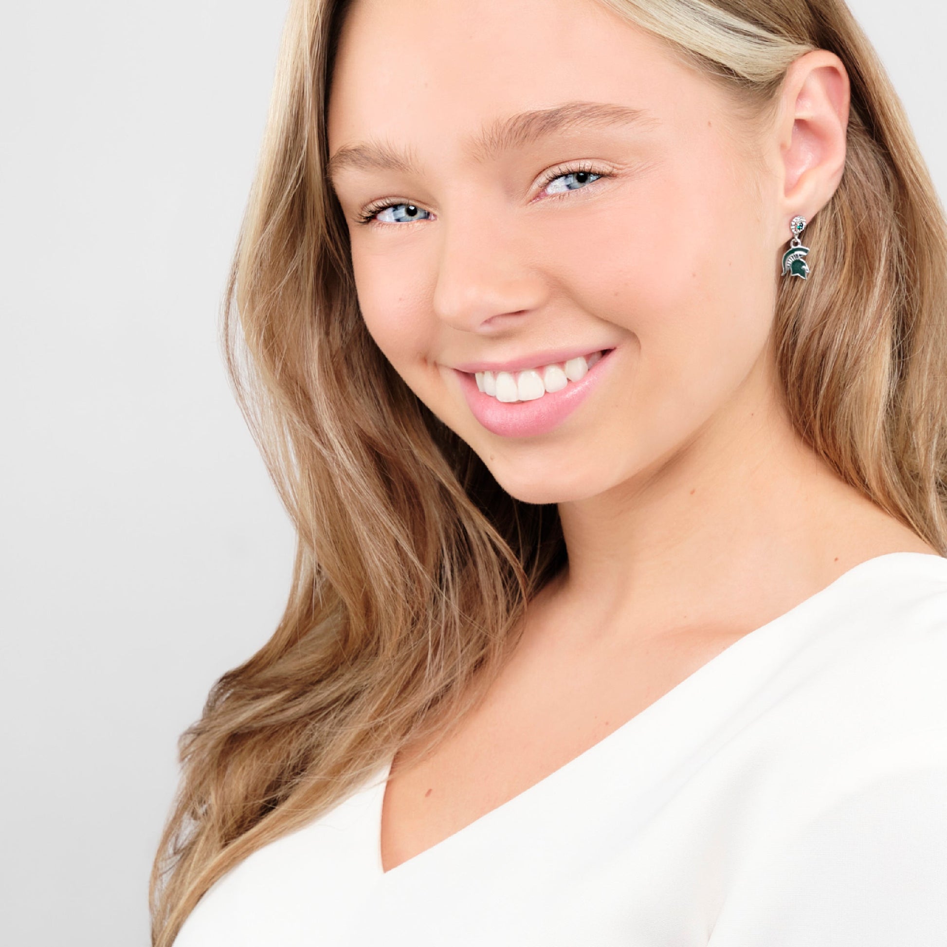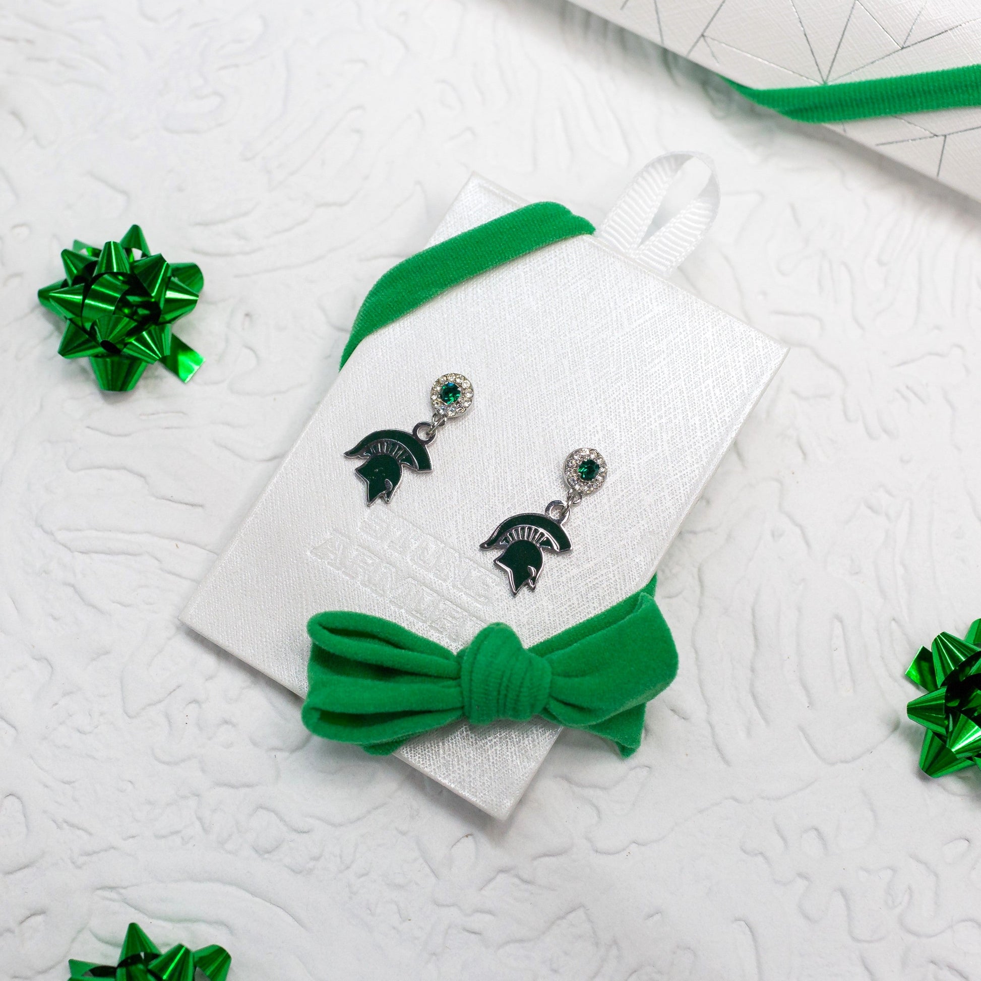 - 💚TREASURE YOUR Michigan State Spartans SPIRIT: These Stone Armory Michigan State University drop earrings are officially licensed. Classic Michigan State Spartan earrings with green and clear crystals, to show off your MSU Spartans pride.