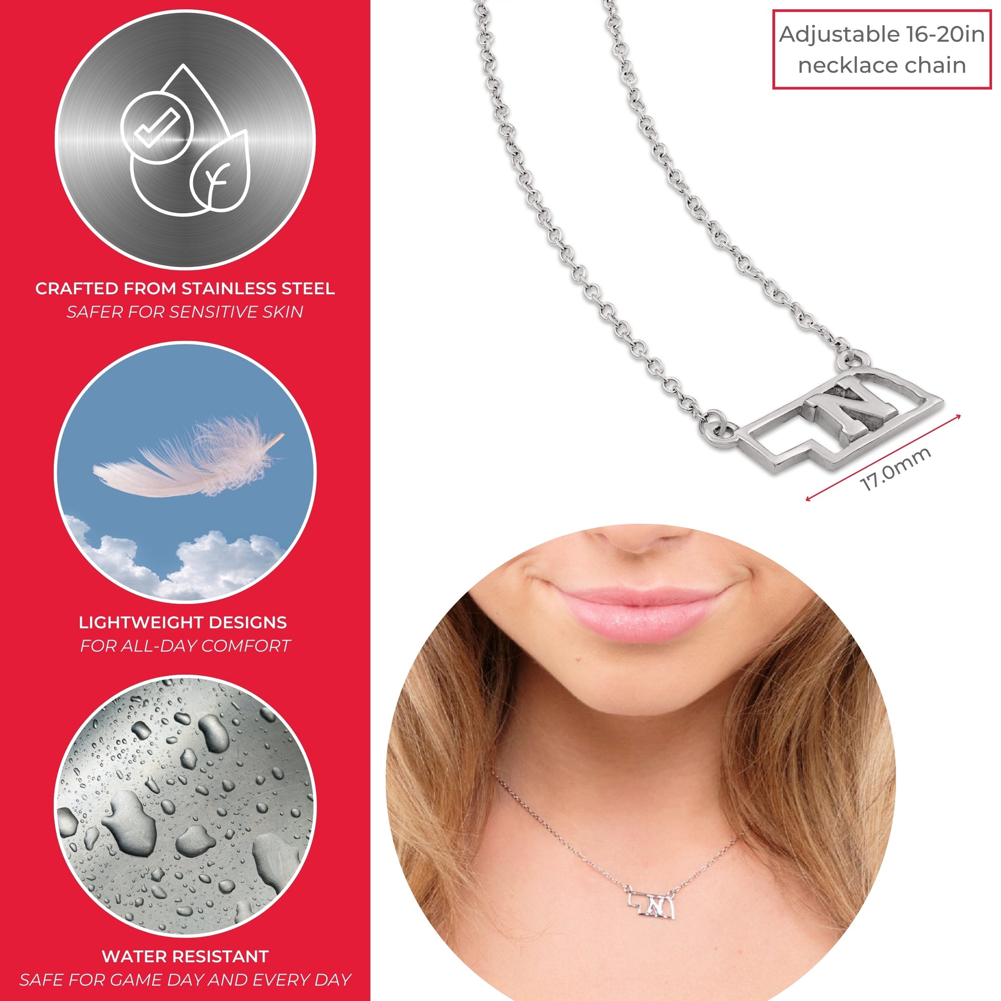 - Your Perfect Fit - This stainless steel necklace is adjustable in size from 16-20 inches, so you can always find the perfect fit. Whatever length you choose, this classic Nebraska design will always show your Cornhusker pride. Wear it alone or as the matching necklace to our crystal Nebraska earrings to create your own Nebraska jewelry set! The block N necklace pendant measures 17.0mm wide x 7.8mm tall.
