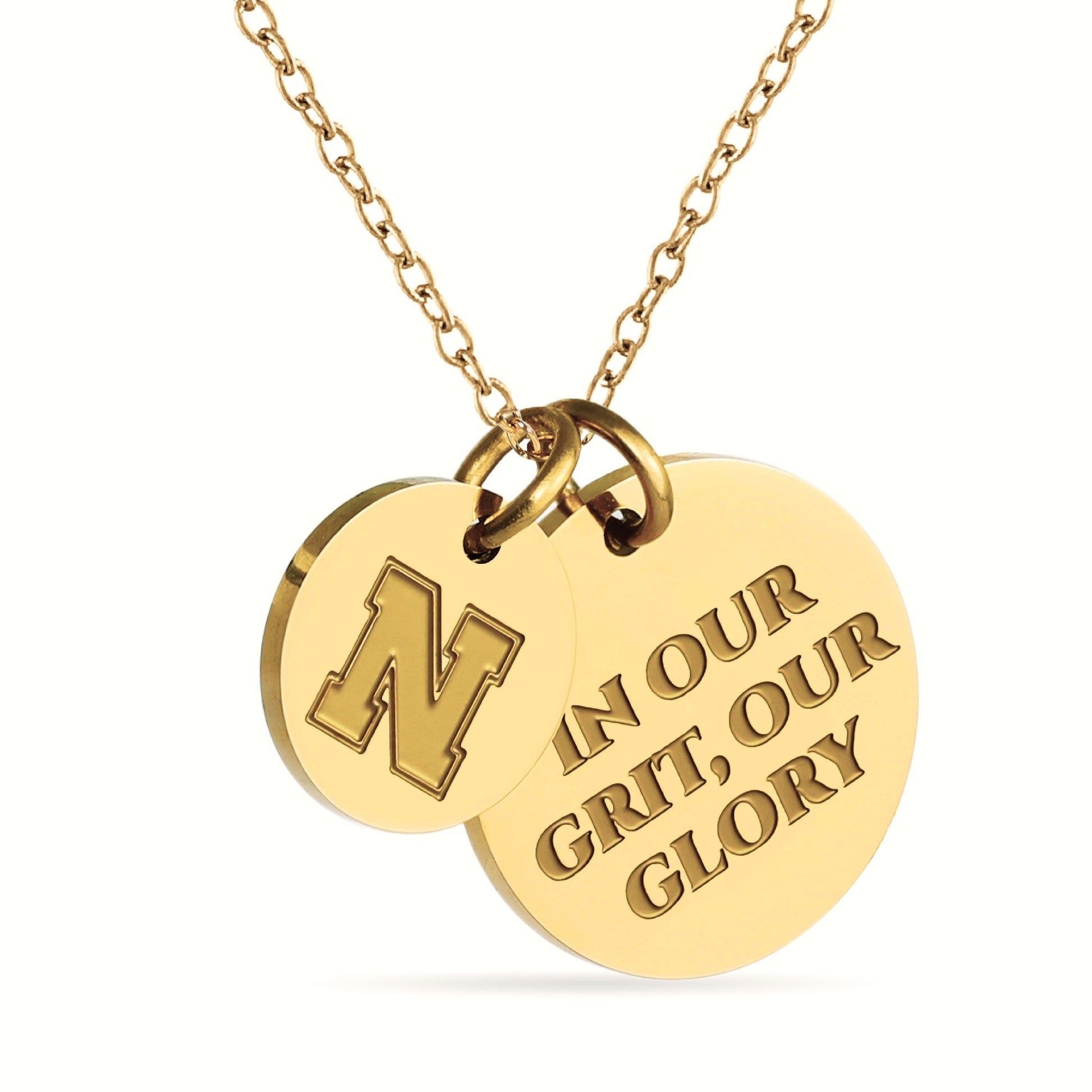 - Express Your Nebraska Cornhuskers Spirit Every Day: This officially licensed Stone Armory University of Nebraska necklace features 18K gold-plated pendants engraved with the iconic Nebraska N and the mantra 'In Our Grit, Our Glory.' Designed for both casual and game-day wear, this adjustable necklace (16-20 inches) makes the perfect gift for Nebraska fans, students, and alumni