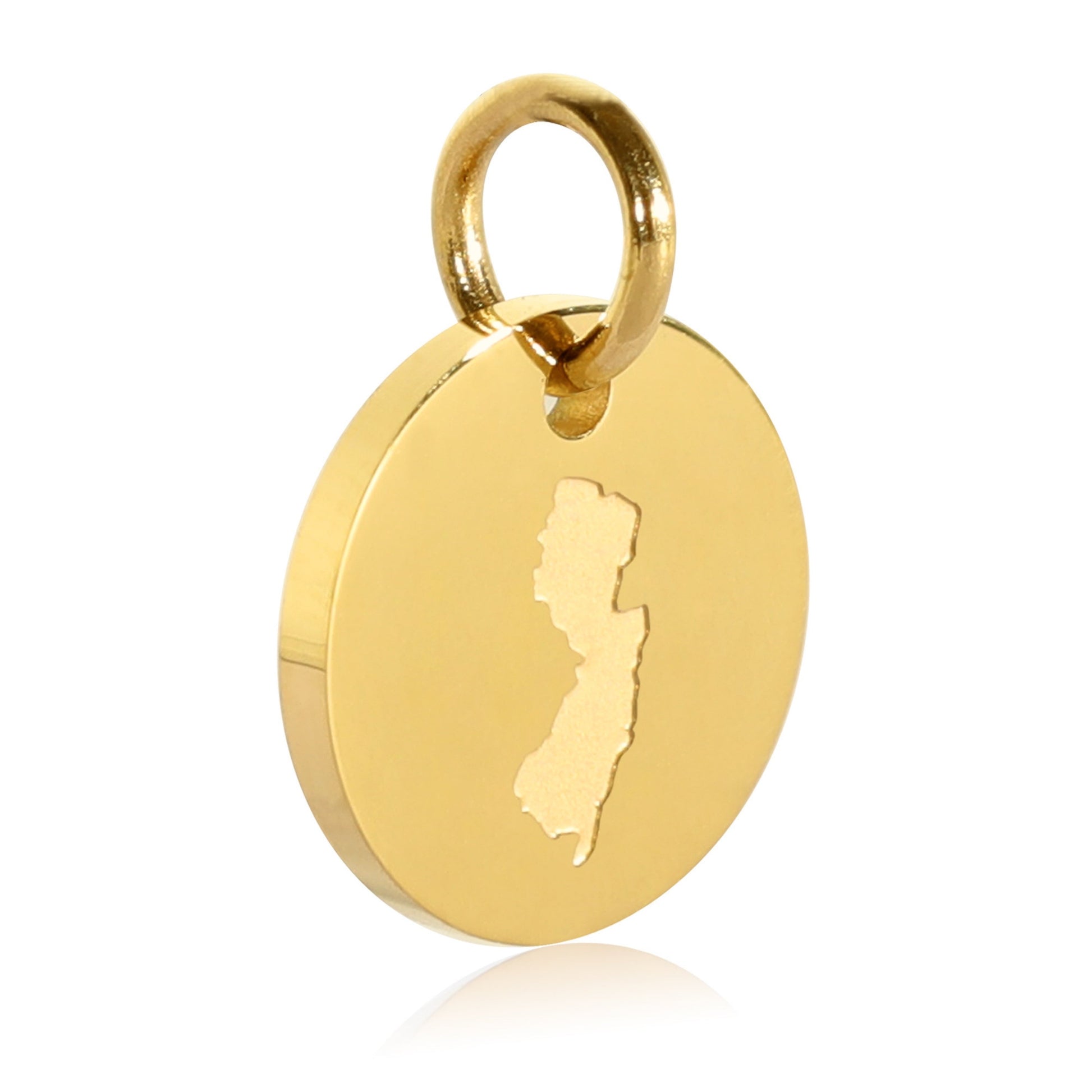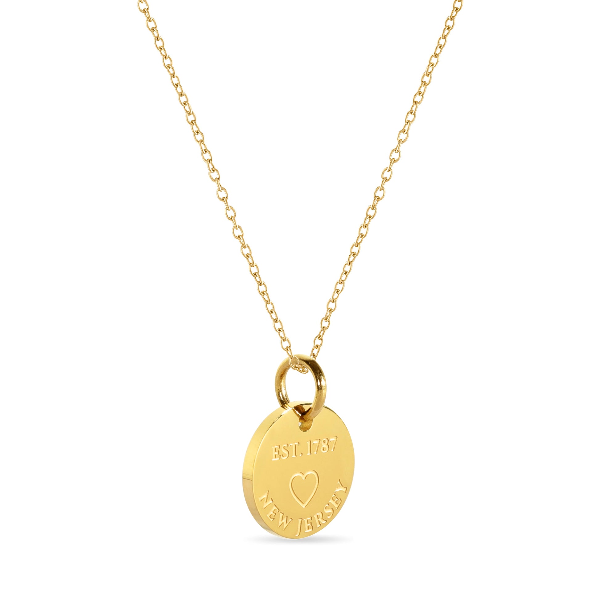 New Jersey Map Engraved Charm Necklace - 18K Gold Plate