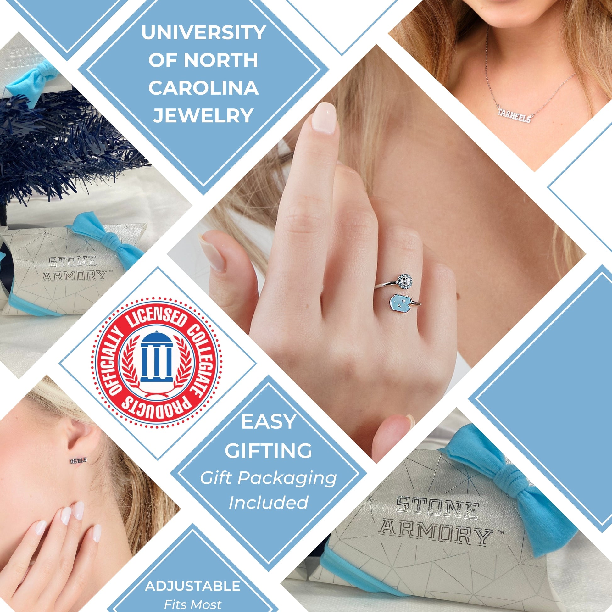 - 💙TREASURE YOUR North Carolina Tar Heels SPIRIT: This Stone Armory University of North Carolina ring is officially licensed. A classic North Carolina ring with blue and clear crystals, to show off your UNC Tar Heel pride.
