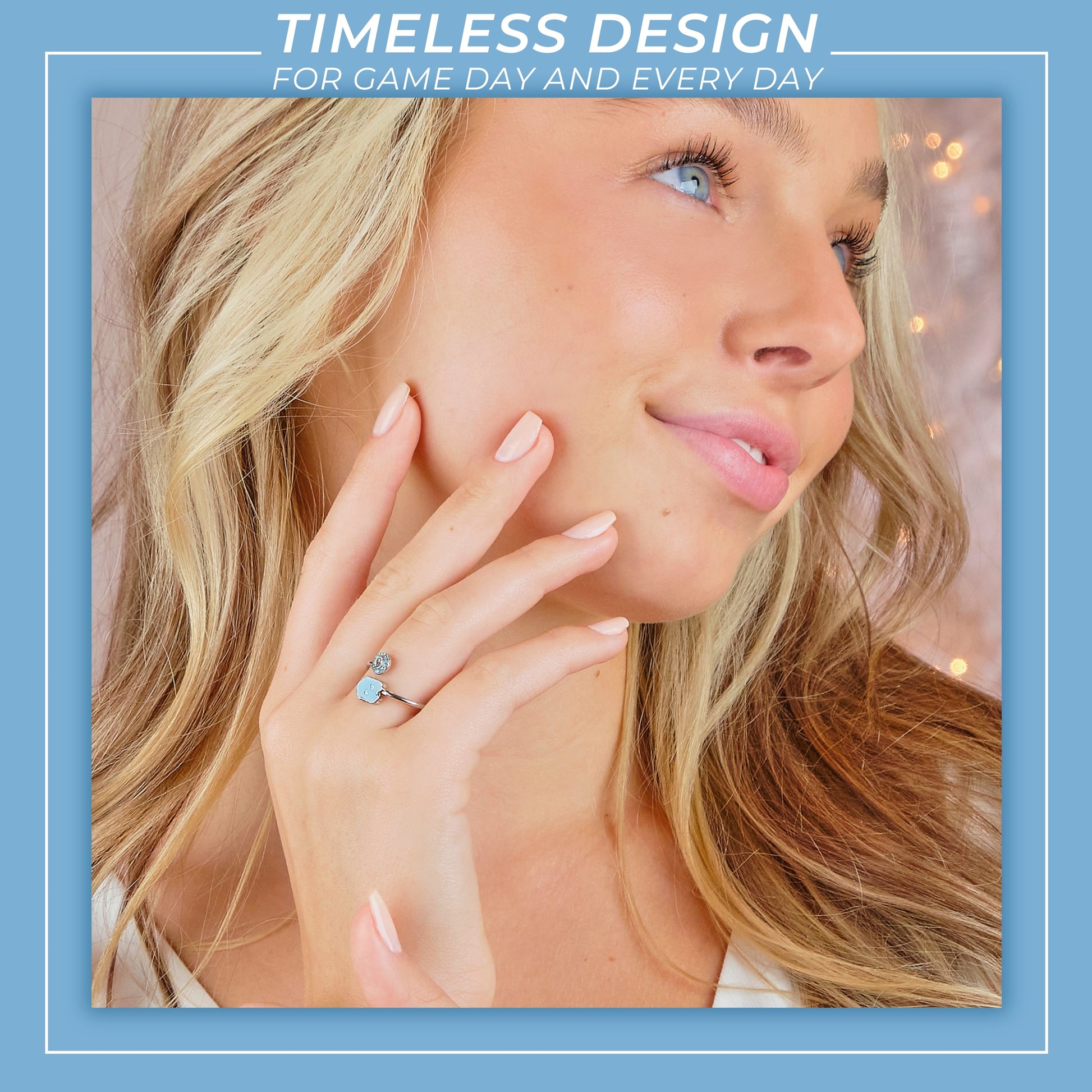 Stone Armory's North Carolina ring is finally here! Gear up for the game with our beautifully designed North Carolina Tar Heels ring! Wear it to the next tailgate or around town to show off your University of North Carolina pride. This adjustable UNC ring would also make the perfect North Carolina gift for your favorite North Carolina Tar Heels fan! The North Carolina logo is accented by sparkling blue and clear crystals. Stone Armory's UNC jewelry is made of stainless steel and is adjustable in size, making this NCAA North Carolina ring the perfect gift to celebrate North Carolina graduation, birthdays, Mother's Day, first day of school, the first game, or for everyday fan wear. Thank you for supporting our small business!