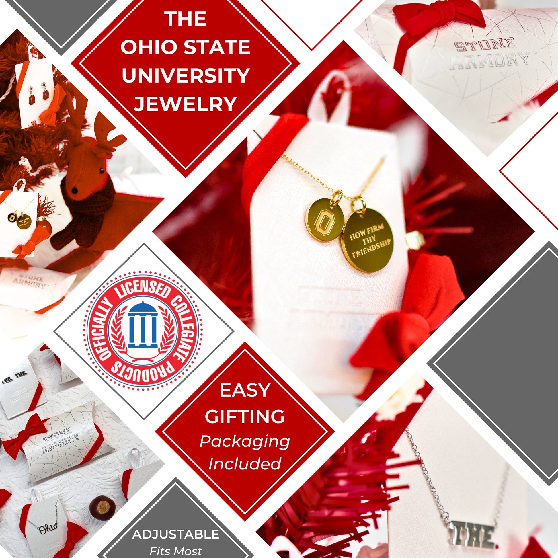 - Express Your Ohio State Buckeyes Spirit Every Day: This officially licensed Stone Armory Ohio State University necklace features 18K gold-plated pendants engraved with the iconic Block O and the mantra 'How Firm Thy Friendship.' Designed for both casual and game-day wear, this adjustable necklace (16-20 inches) makes the perfect gift for Ohio State fans, students, and alumni