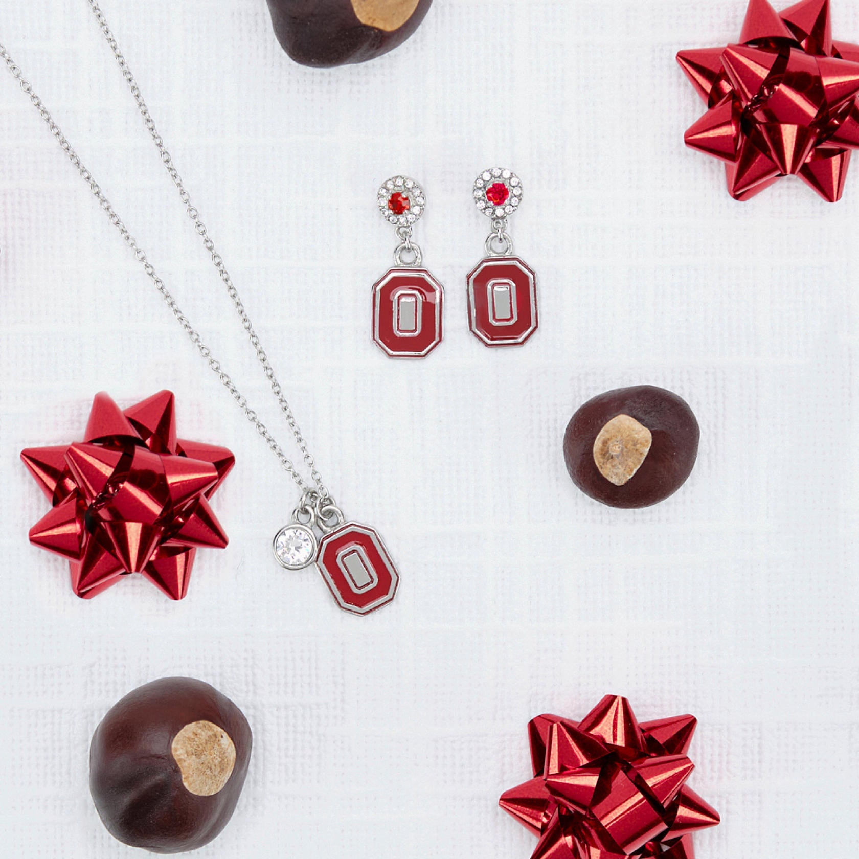 - Treasure Your Ohio State Buckeyes Spirit - This Ohio State charm necklace from Stone Armory is full of Buckeye Pride! Featuring a scarlet Block O pendant charm accented by a sparkling clear crystal, this Ohio State necklace is just as unique as you. OH-IO!