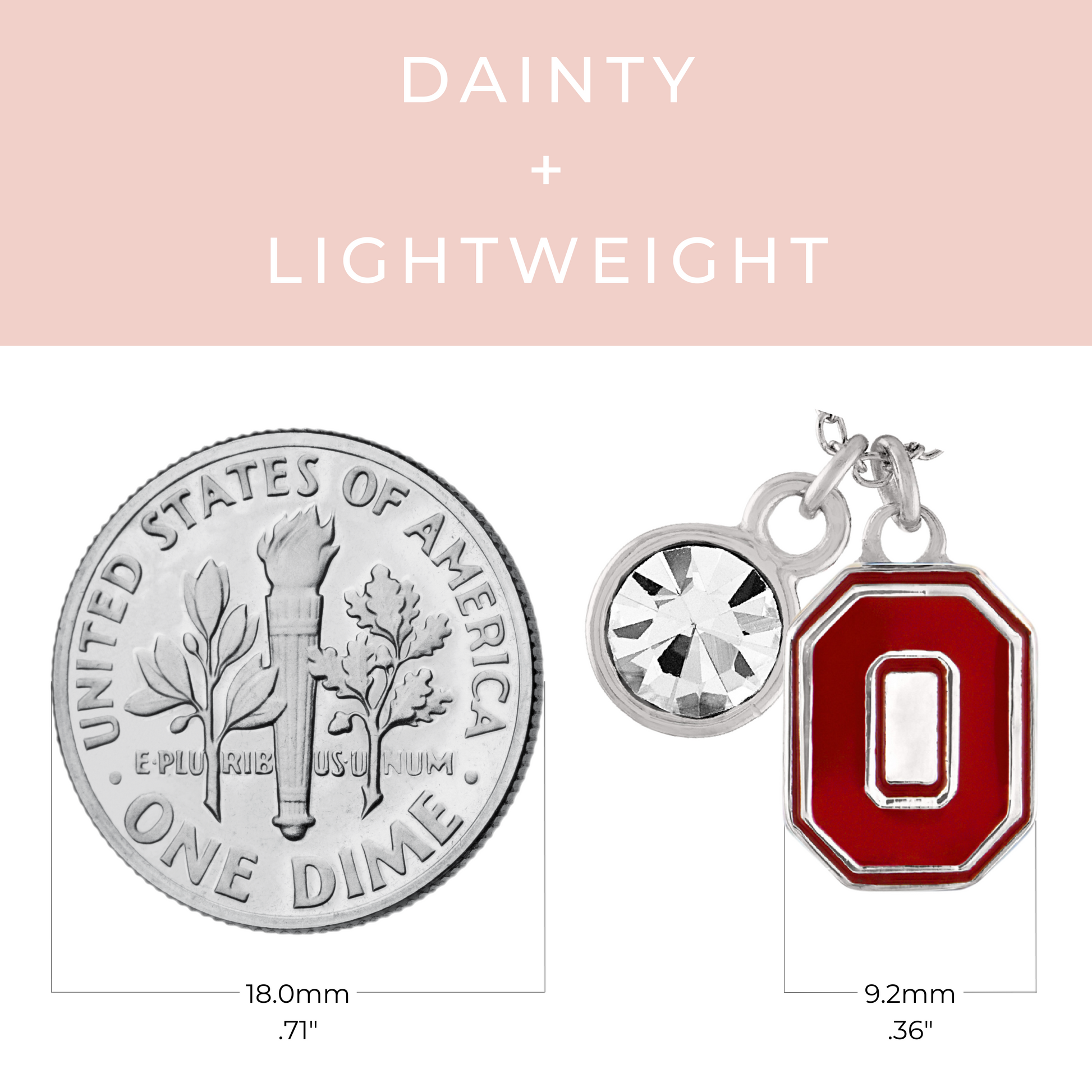 - Your Perfect Fit - This dainty necklace for women is adjustable in size from 16-20 inches, so you can always find the perfect fit. Wear it alone or as a layering necklace with your other Ohio State gear! Whatever length you choose, this classic Ohio State design will always show your Buckeye pride. The Block O necklace pendant measures 12.0mm tall x 9.5mm wide; the crystal measures 7.4mm across.