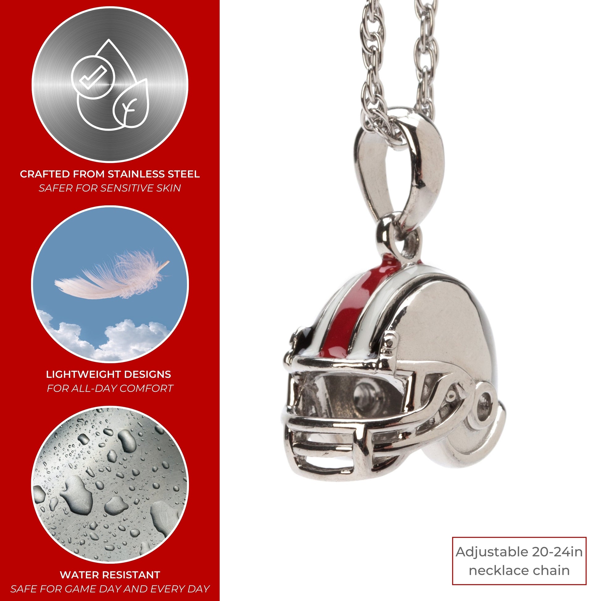 - 🌰YOUR PERFECT FIT: This stainless steel Ohio State necklace is adjustable in size, with a chain that adjusts between 18-20 inches. Add this classic Ohio State necklace to show off your beloved Ohio State Buckeyes school and team. The Buckeye Football Helmet pendant measures 13.8mm tall by 15.0mm wide.