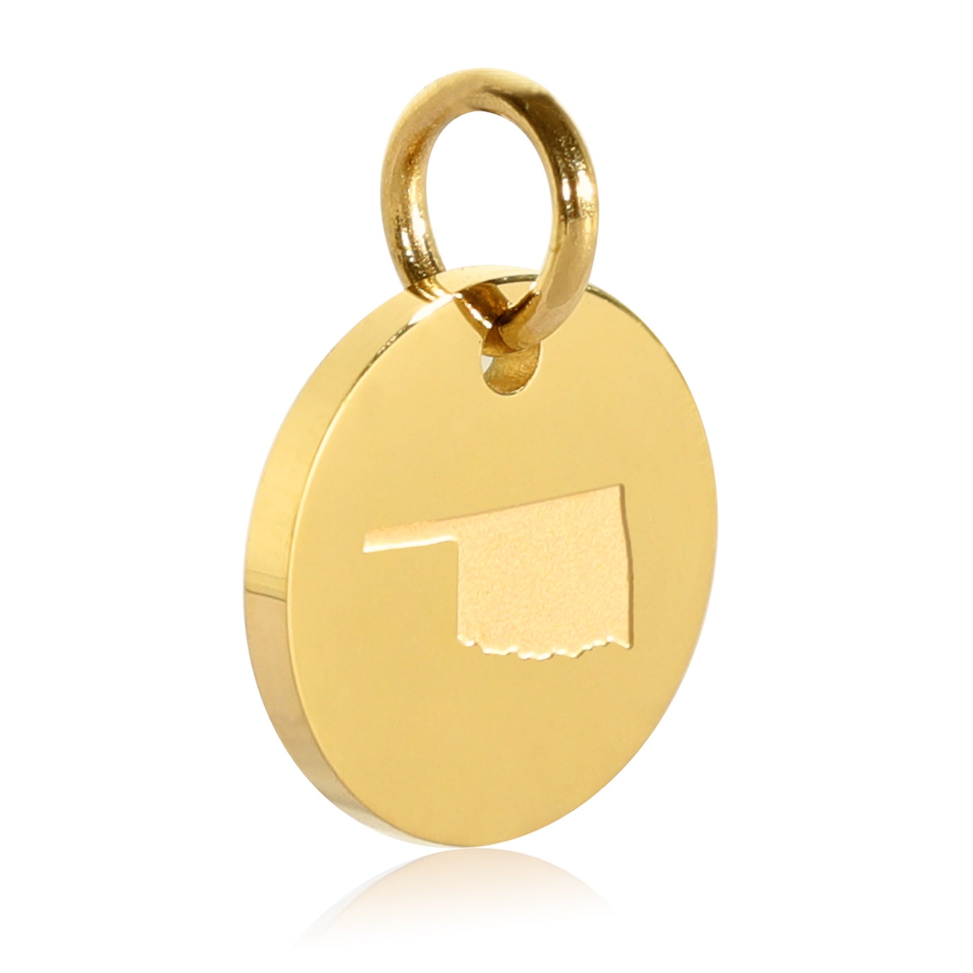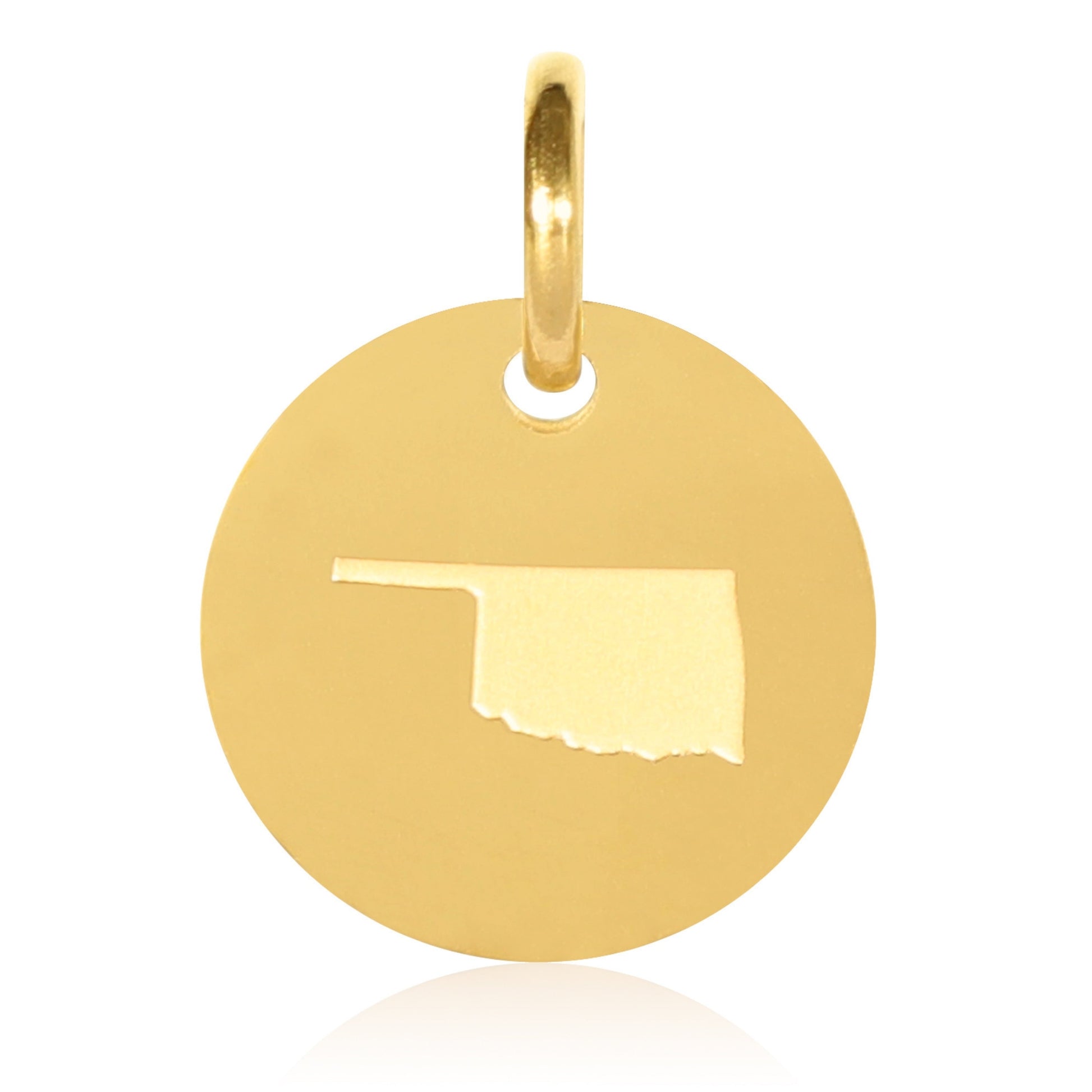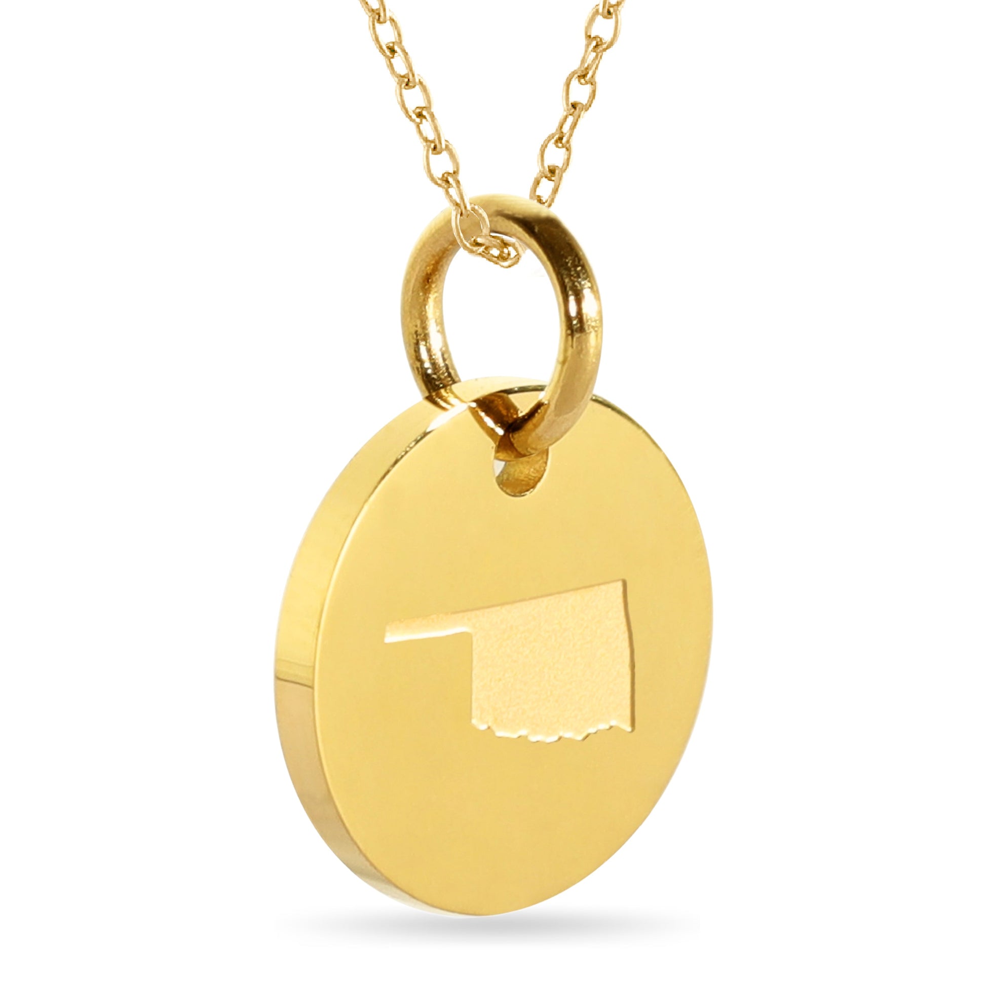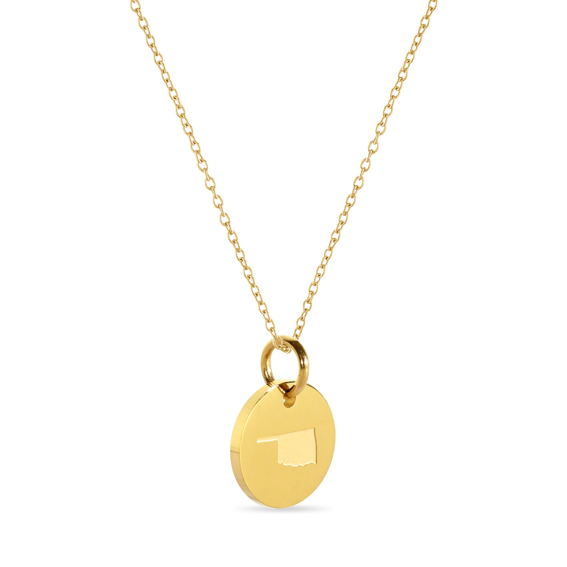 Oklahoma Map Engraved Charm Necklace - 18K Gold Plate
