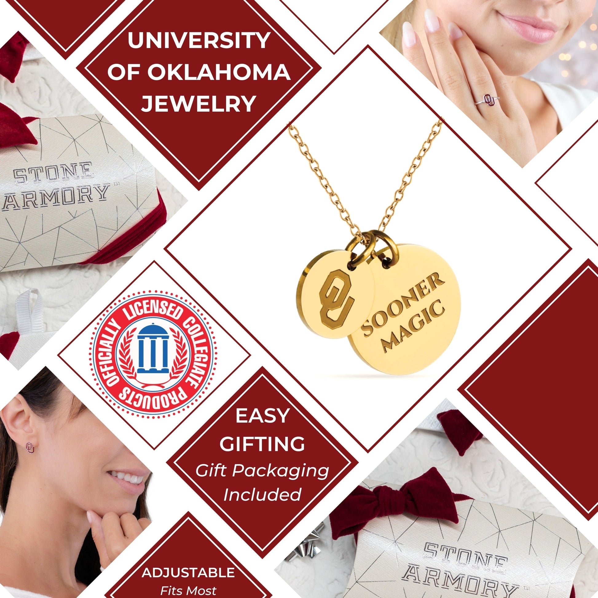 - Express Your Oklahoma Sooners Spirit Every Day: This officially licensed Stone Armory University of Oklahoma necklace features 18K gold-plated pendants engraved with the iconic Block OU and the mantra 'Sooner Magic.' Designed for both casual and game-day wear, this adjustable necklace (16-20 inches) makes the perfect gift for Oklahoma fans, students, and alumni
