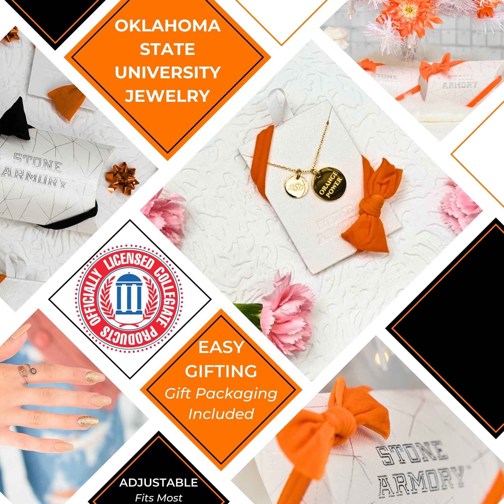- Express Your Oklahoma State Cowboys Spirit Every Day: This officially licensed Stone Armory Oklahoma State University necklace features 18K gold-plated pendants engraved with the iconic Block OSU and the mantra 'Orange Power.' Designed for both casual and game-day wear, this adjustable necklace (16-20 inches) makes the perfect gift for Oklahoma State fans, students, and alumni