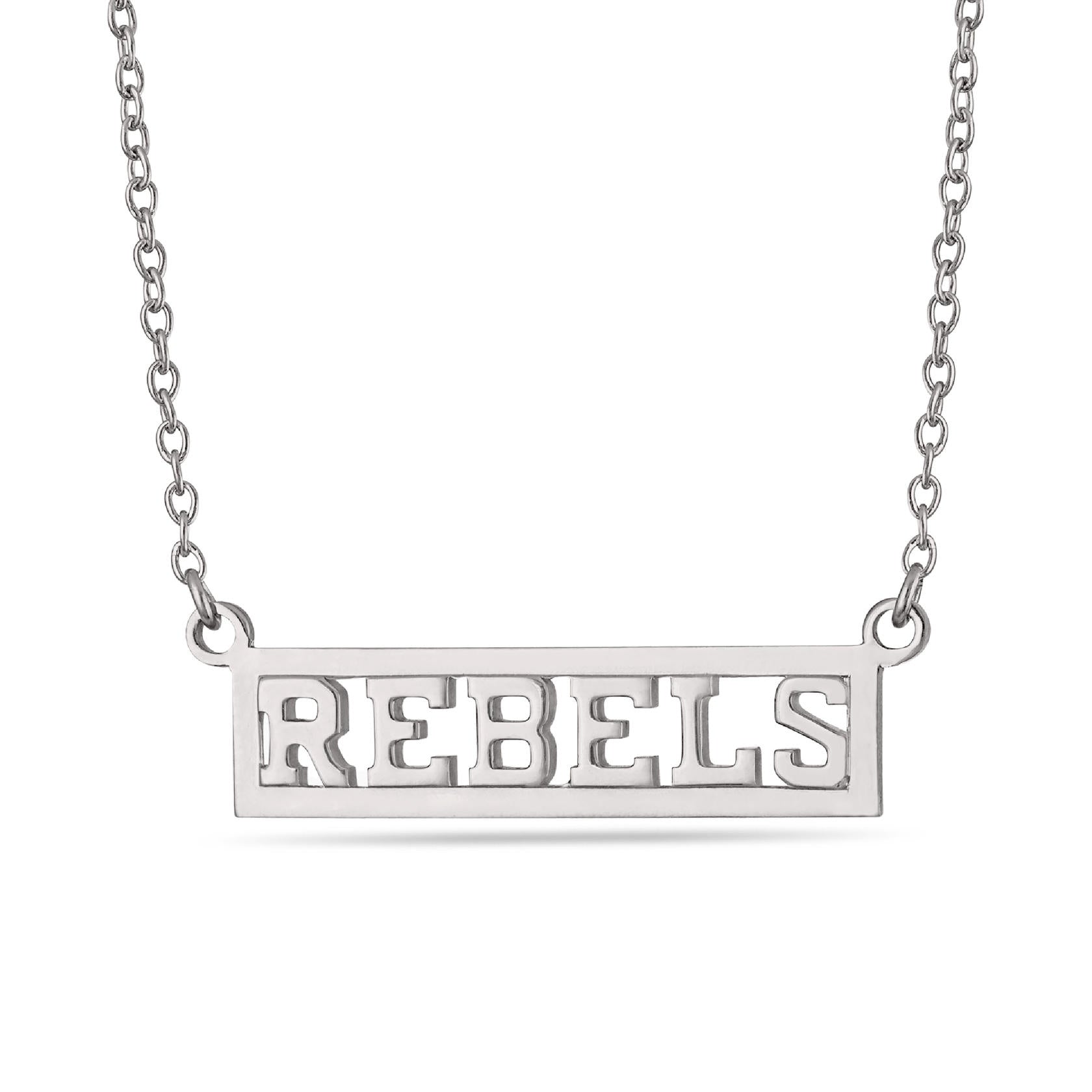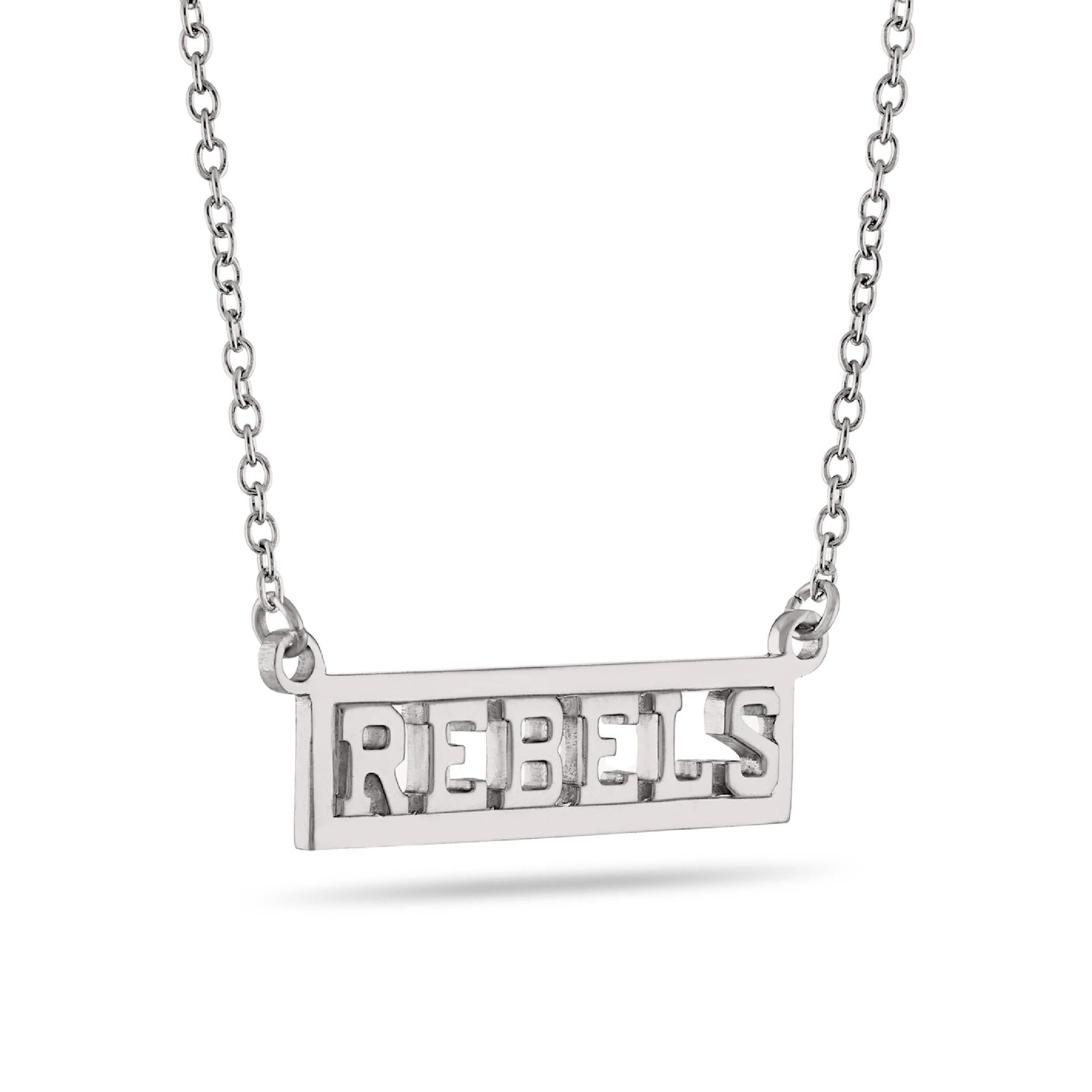 - YOUR PERFECT FIT: This stainless steel Ole Miss necklace is adjustable in size, with a chain that adjusts between 16-20 inches. Add this classic Ole Miss necklace to show off your beloved Ole Miss Rebels school and team. The REBELS lettering measures 6.15mm tall by 23.81mm wide.