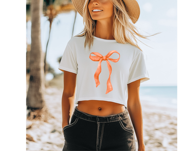 Customizable: Orange Coquette Bow Flowy Cropped T-Shirt