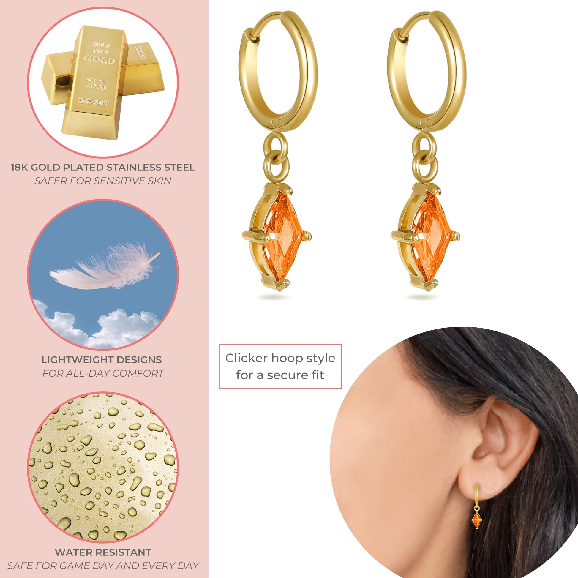 Orange Crystal Huggie Hoops