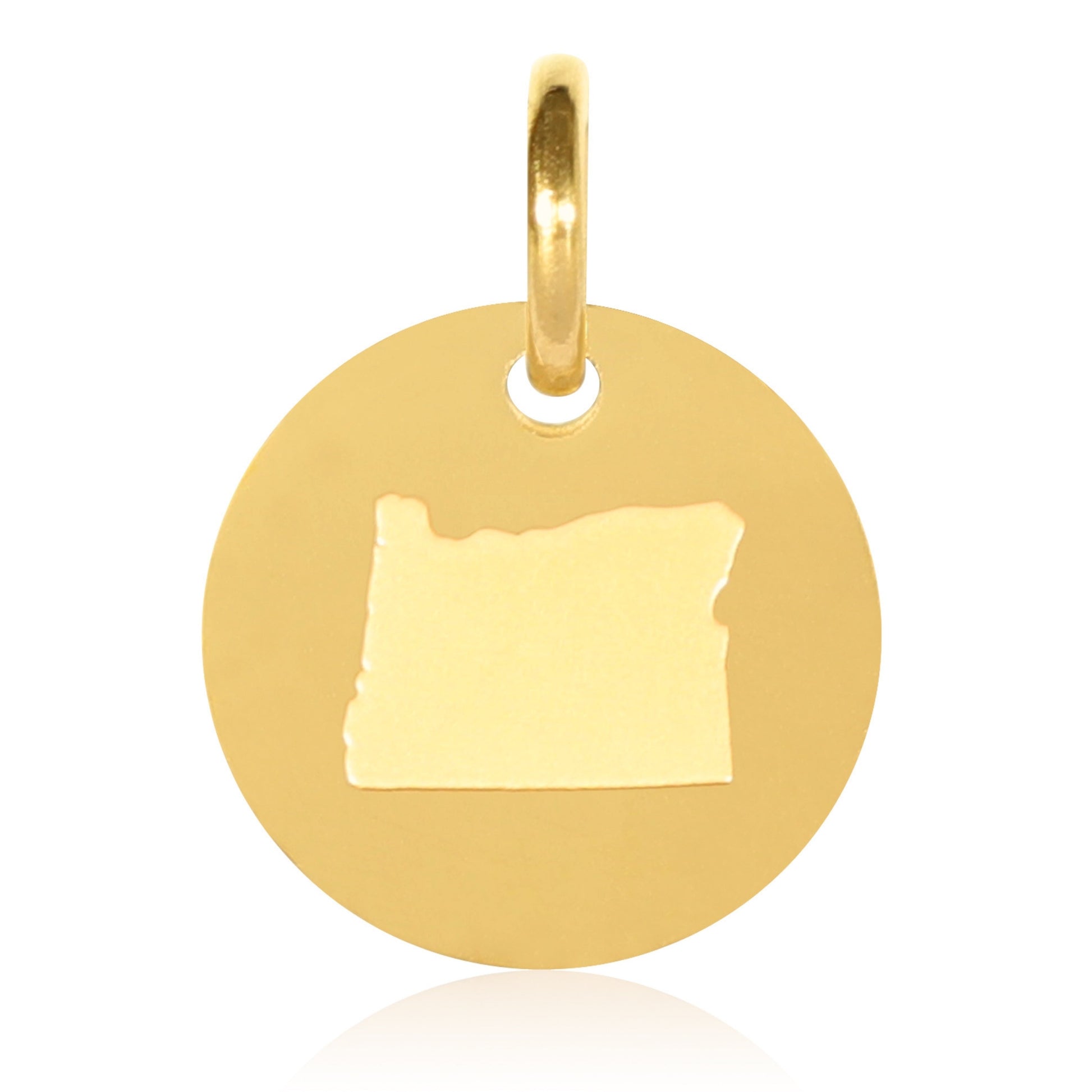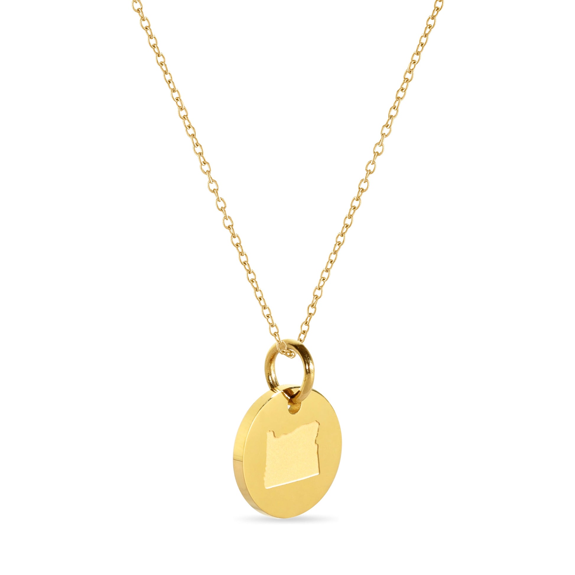 Oregon Map Engraved Charm Necklace - 18K Gold Plate