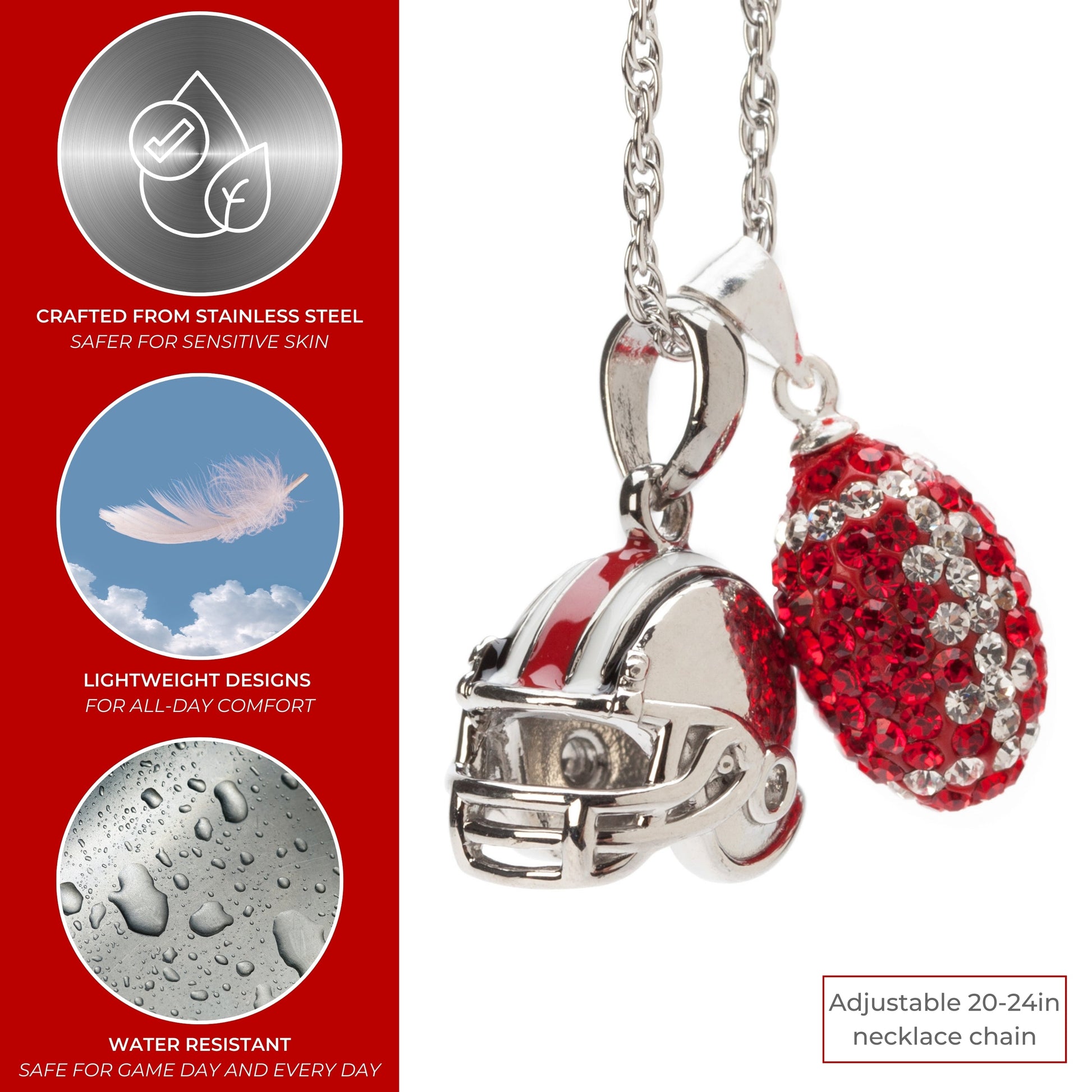 We've added a red crystal football pendant to our Ohio State football helmet necklace! The perfect gift for any OSU fan, student or alumni!