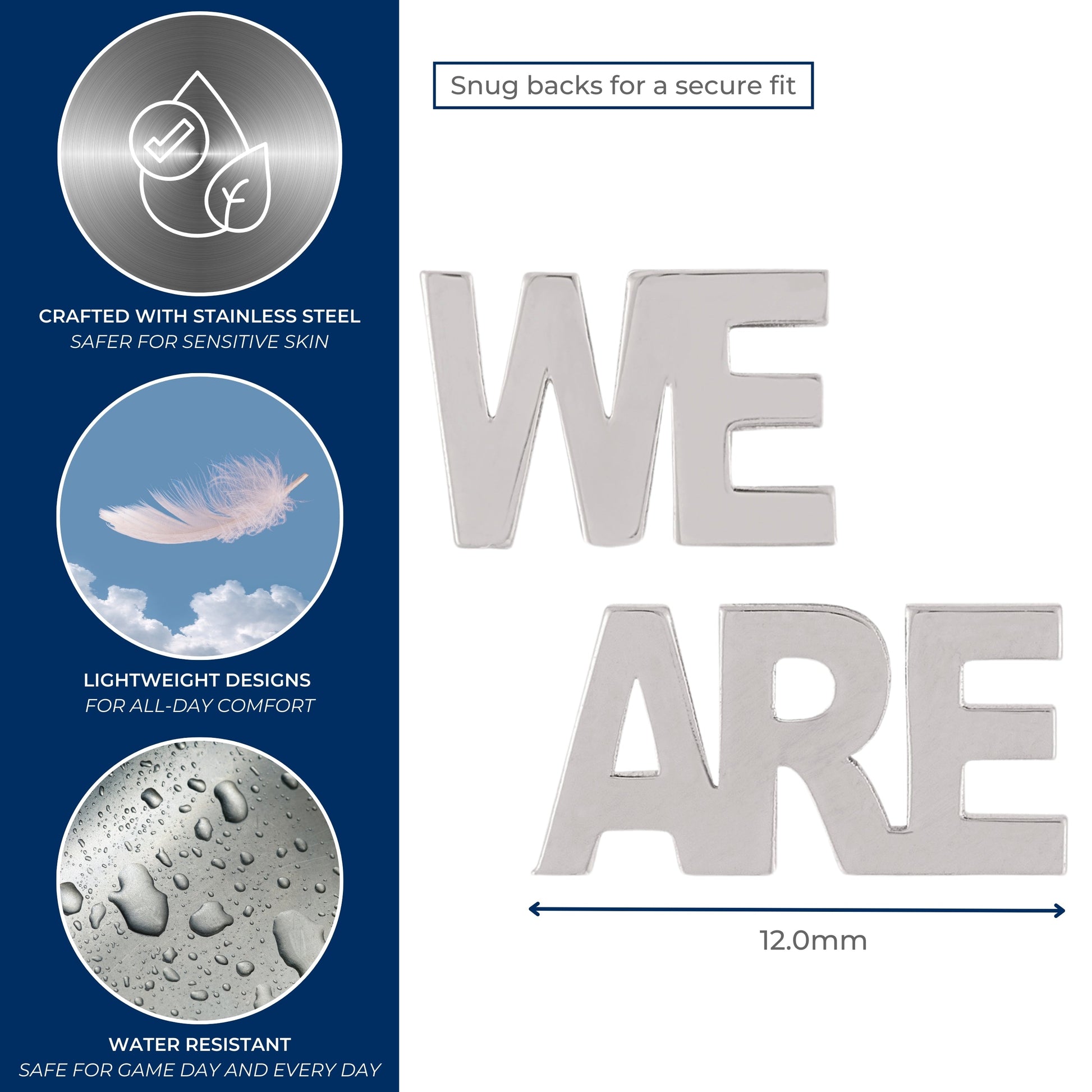 - 💙YOUR PERFECT FIT: These stainless steel Penn State stud earrings are always the perfect fit. Add these classic Penn State earrings to show off your beloved Penn State Nittany Lions school and team. The WE ARE Dimensions: WE measures 6.15mm in height and 9.29mm width. ARE measures 6.15mm in height and 12mm width. These Penn State Earrings are made of high-quality stainless steel.