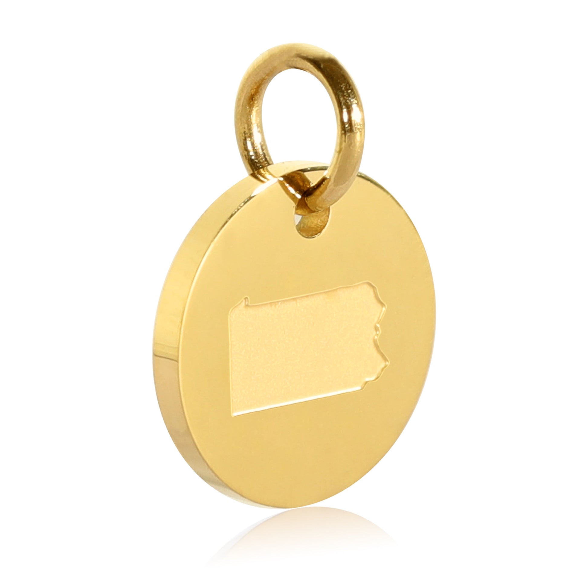 Pennsylvania Map Engraved Charm Necklace - 18K Gold Plate