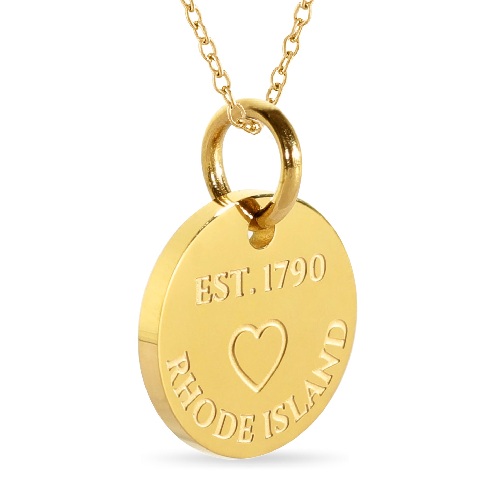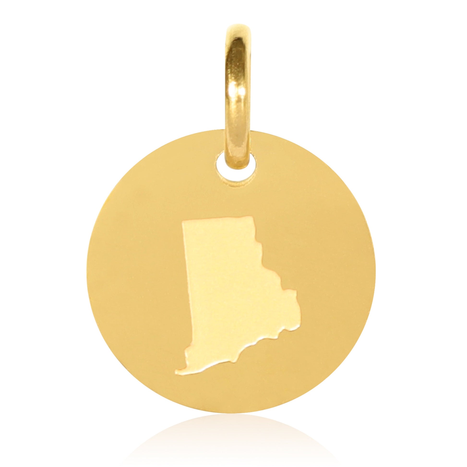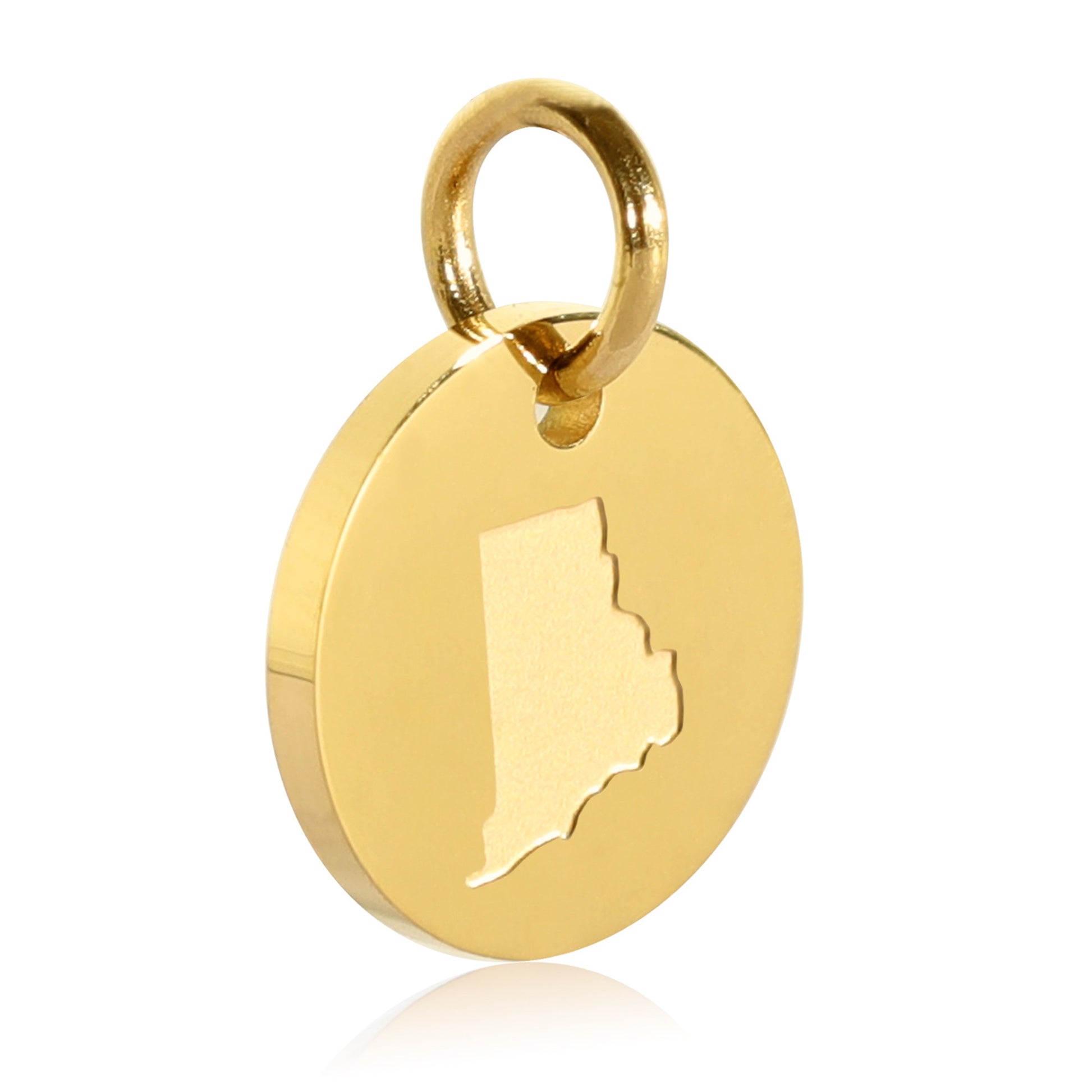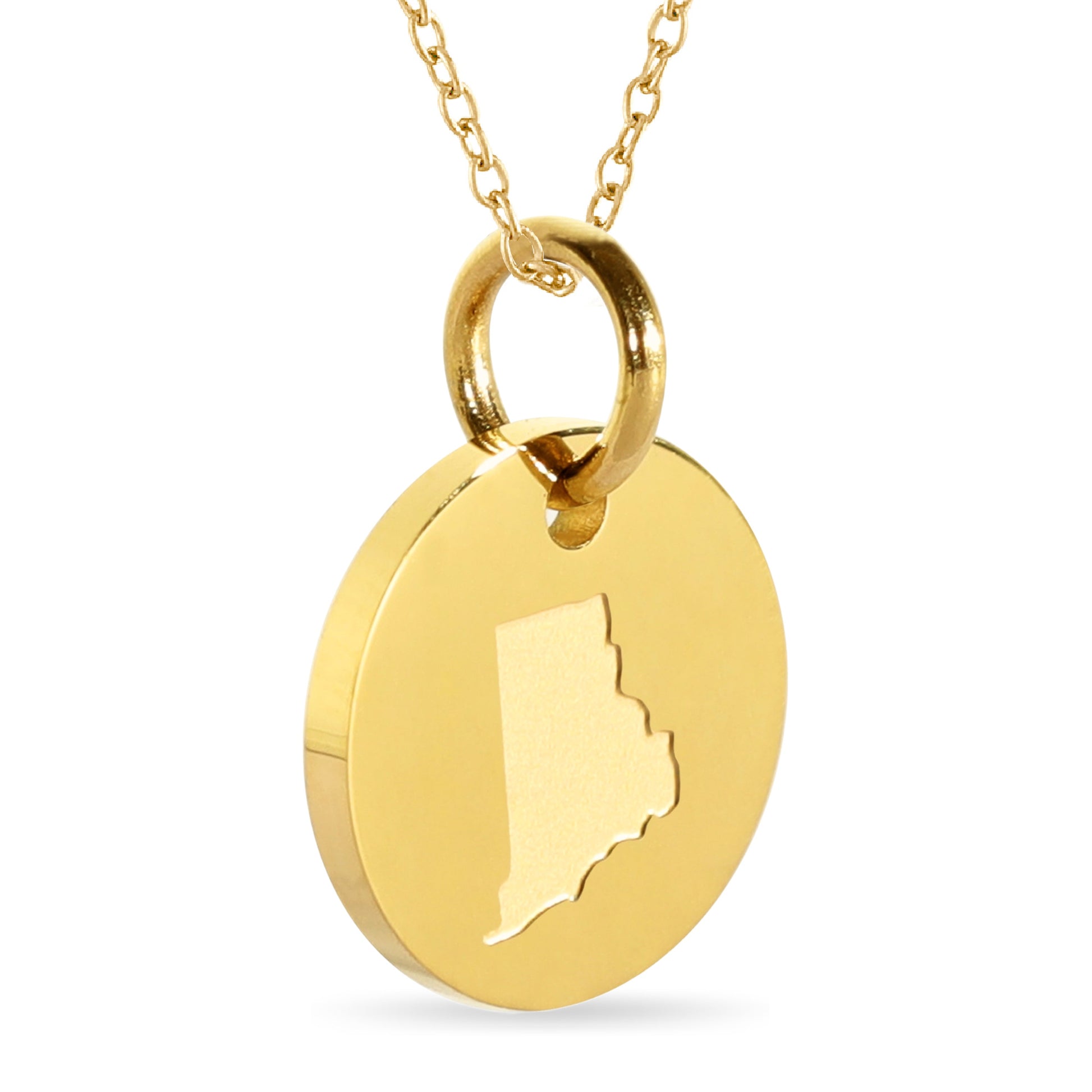 Rhode Island Map Engraved Charm Necklace - 18K Gold Plate