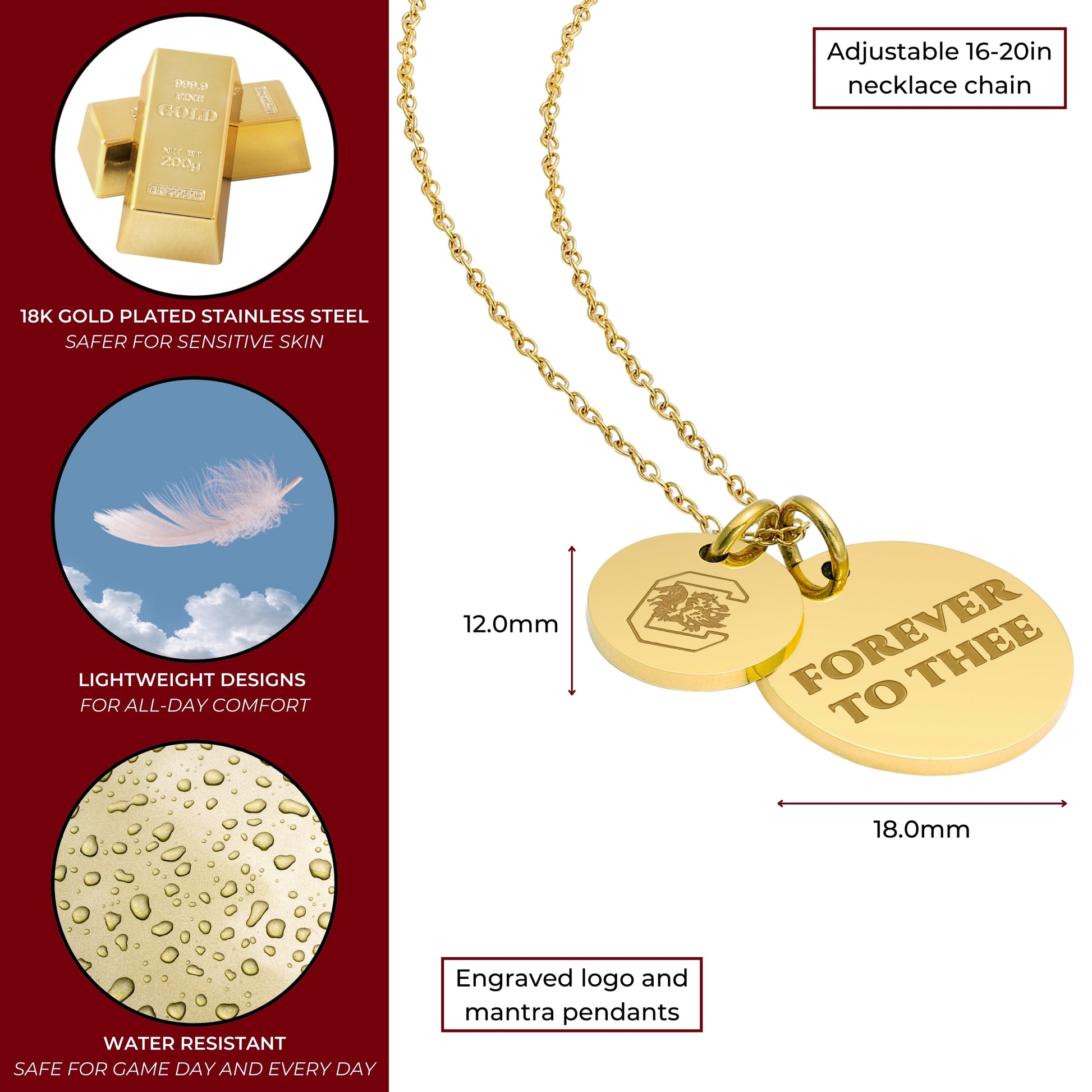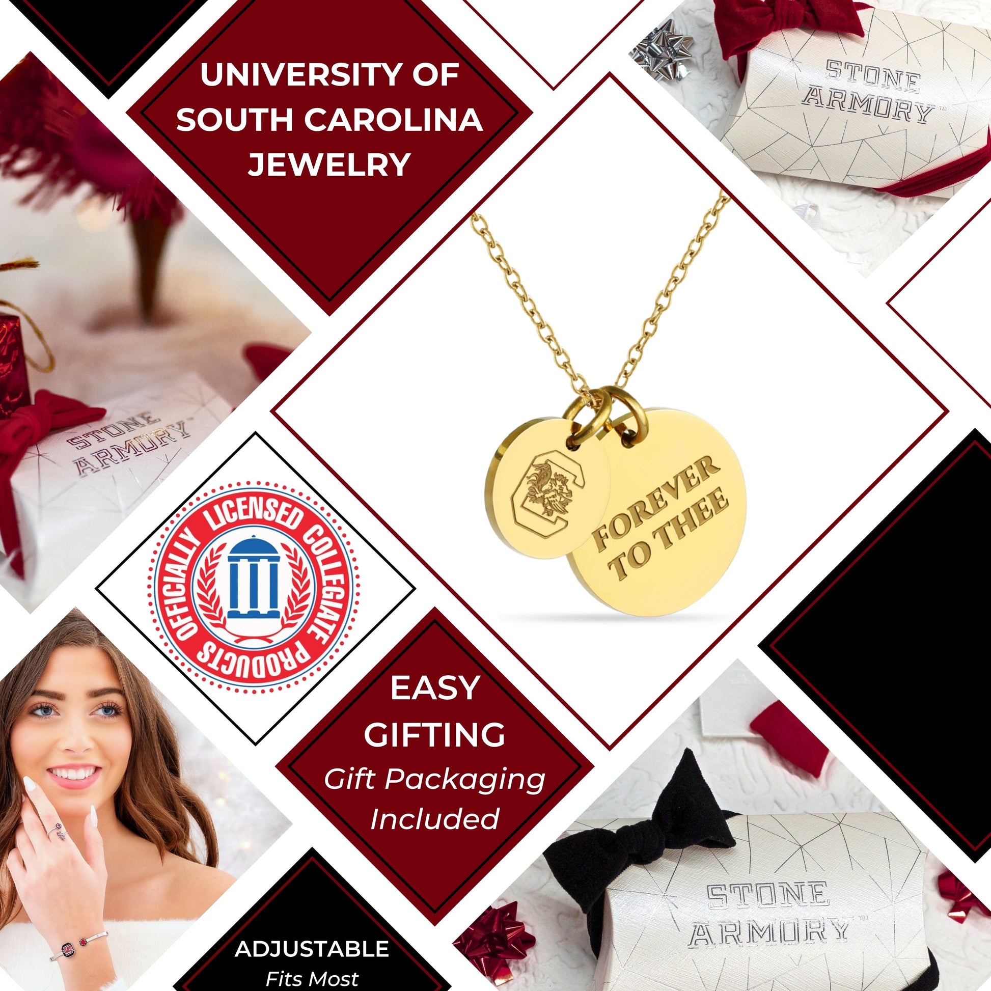 - Express Your South Carolina Gamecocks Spirit Every Day: This officially licensed Stone Armory University of South Carolina necklace features 18K gold-plated pendants engraved with the iconic Fighting Gamecock and the mantra 'Forever to Thee.' Designed for both casual and game-day wear, this adjustable necklace (16-20 inches) makes the perfect gift for South Carolina fans, students, and alumni