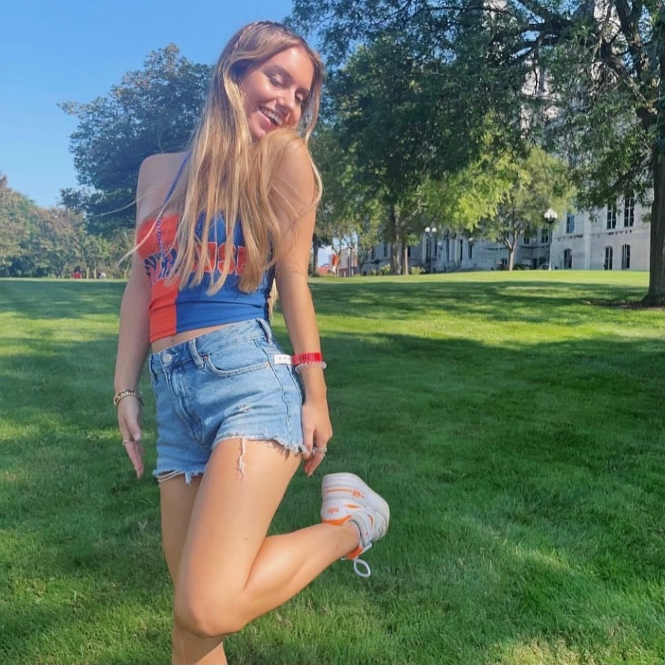 Our half navy and half orange Syracuse form fitted tube top is sure to turn heads! This tube top has the most flattering fit. Stretchy and comfortable fabric makes it the perfect top! Pair with our Syracuse Tailgate Skirt and Syracuse Hair Bow for the perfect game day look.