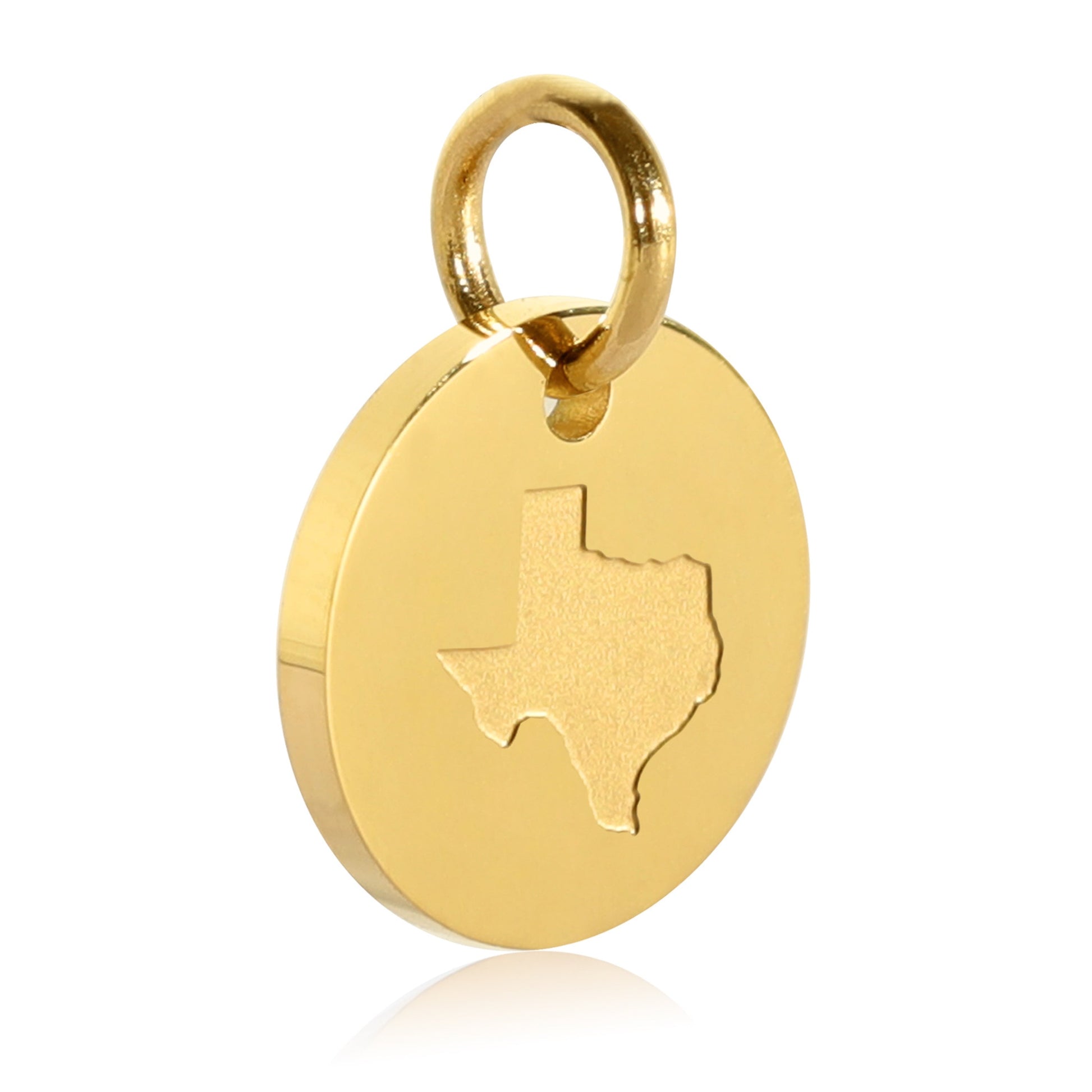Texas Map Engraved Charm Necklace - 18K Gold Plate