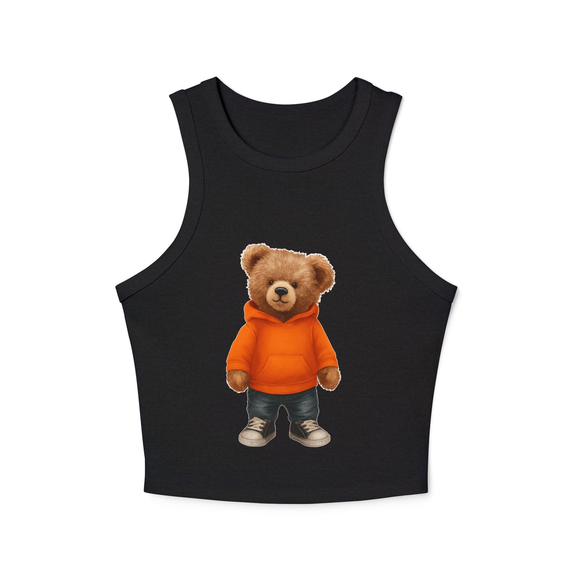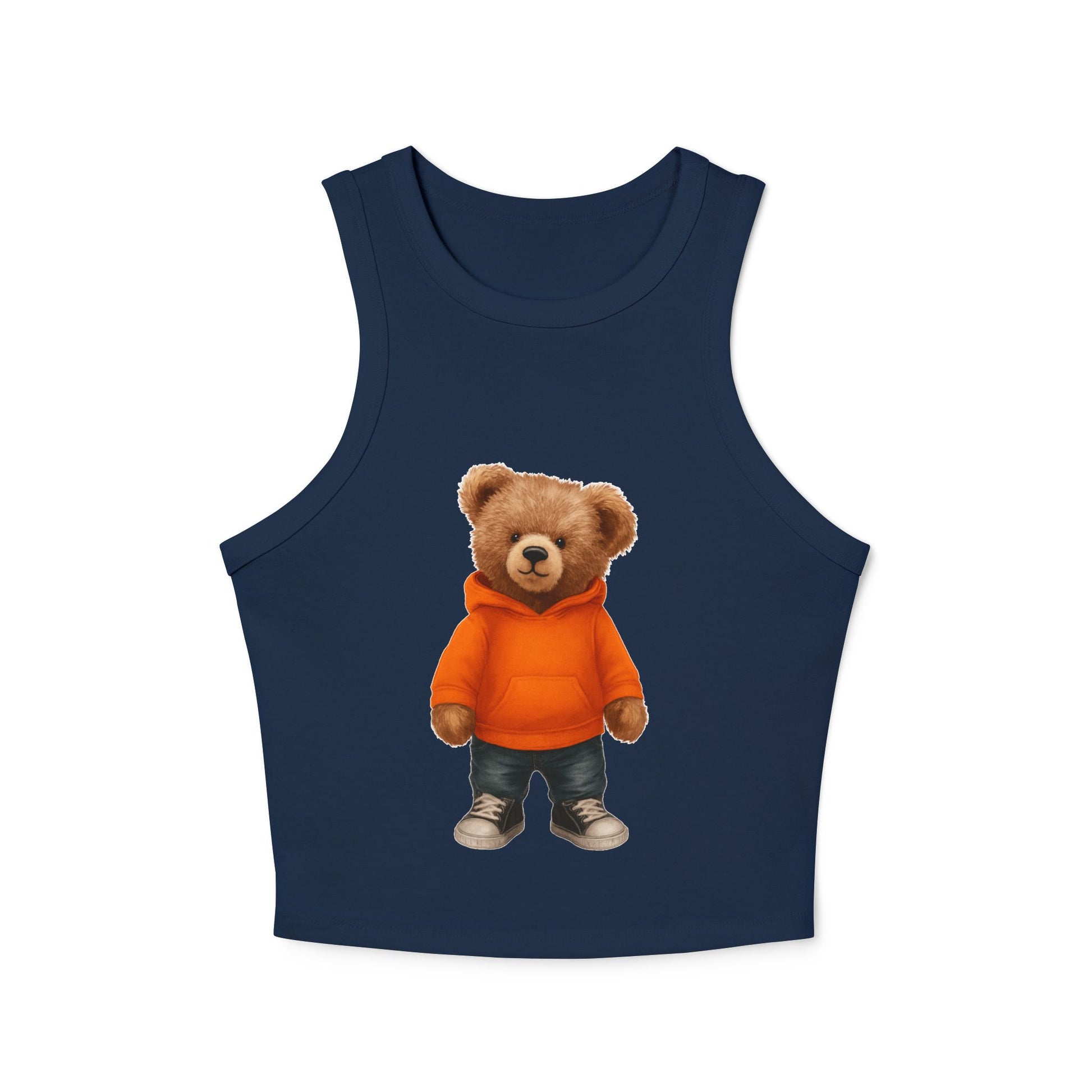 Trendy Bear Print Racer Tank Top for Women, Casual Summer Top, Cute Beachwear, Gift for Her, Festival Fashion, Stylish Comfort