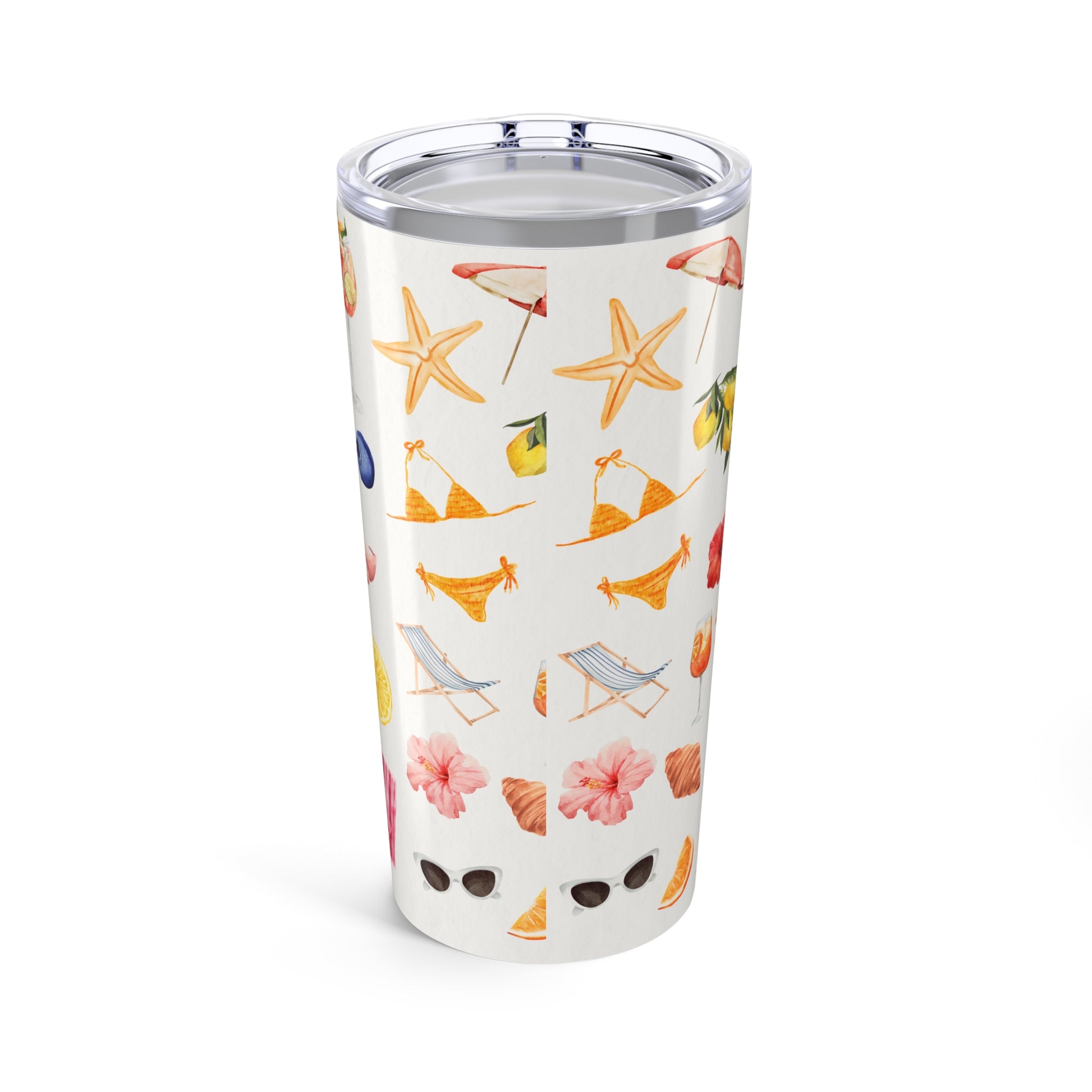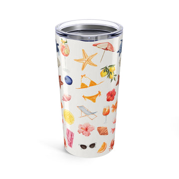 Introducing your new favorite drinking companion – a stylish 20oz tumbler that seamlessly blends functionality with a vibrant design. The glossy finish and colorful wraparound print evoke a cheerful, summery vibe, making each sip feel like a mini-vacation. Perfect for keeping your drinks hot or cold, this tumbler is not just practical, but also a stylish accessory for beach lovers, outdoor adventurers, or anyone who enjoys sipping their beverage in style. It’s ideal for summer gatherings, beach days, picnics, or simply brightening up your daily routine. This tumbler also makes a fantastic gift for birthdays, holidays, or any celebration. Bring a little sunshine to your life with this delightful tumbler! Product features - Stainless Steel: Durable and resistant to rust, staining, and corrosion. - Hot or Cold: Excellent seal keeps beverages at the perfect temperature. - Dishwasher-safe: Easy to clean and maintain. - Glossy Finish: Stunning full-color decoration that shines. - Vacuum Insulated: Keeps drinks at their ideal temperature longer. Care instructions - Clean in dishwasher or wash by hand with warm water and dish soap