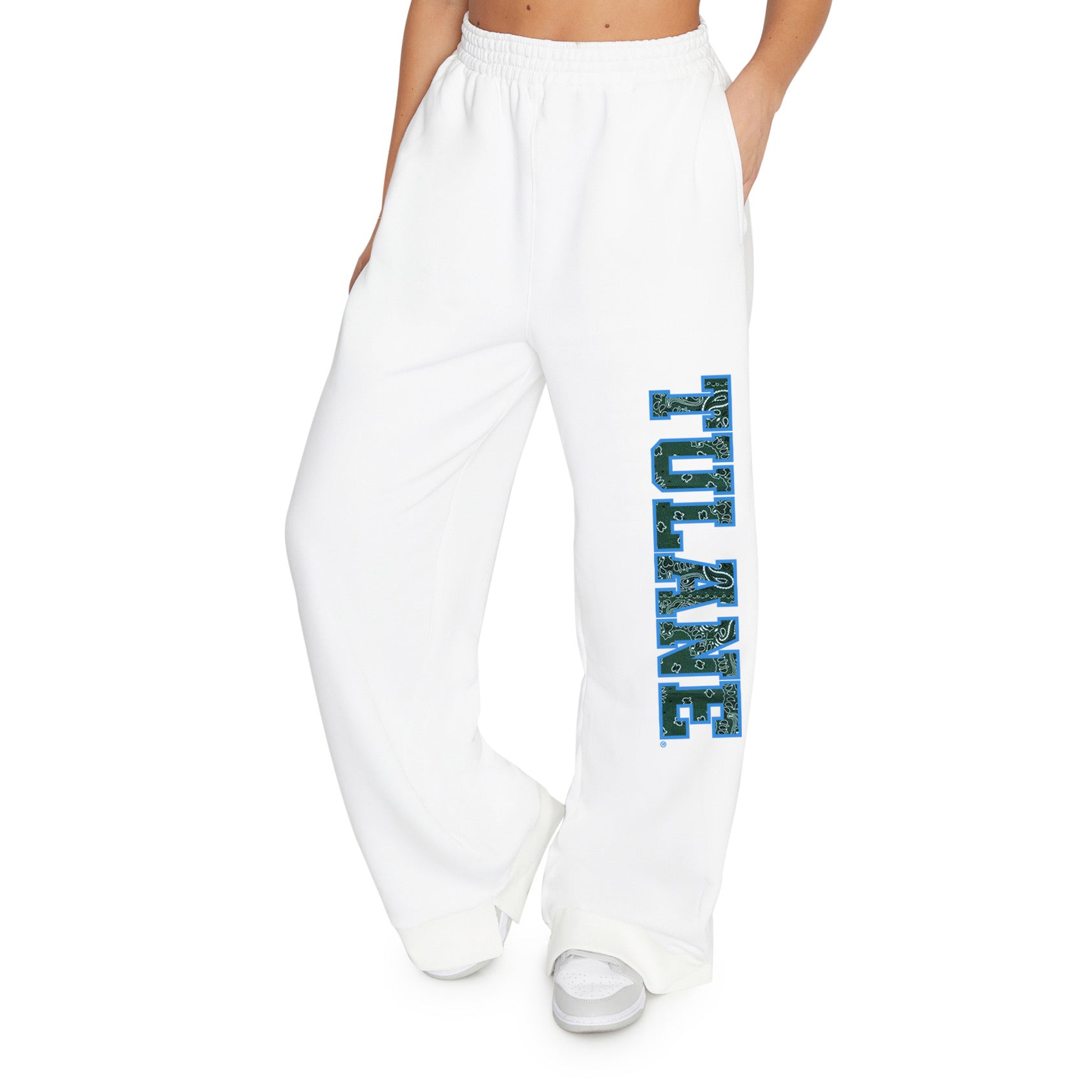 Our Tulane Bandana Print Flare sweatpants are a must have & are selling out fast! Super soft fabric & elastic waistband. Pair with our Tulane Babydoll Tee for the cutest outfit.