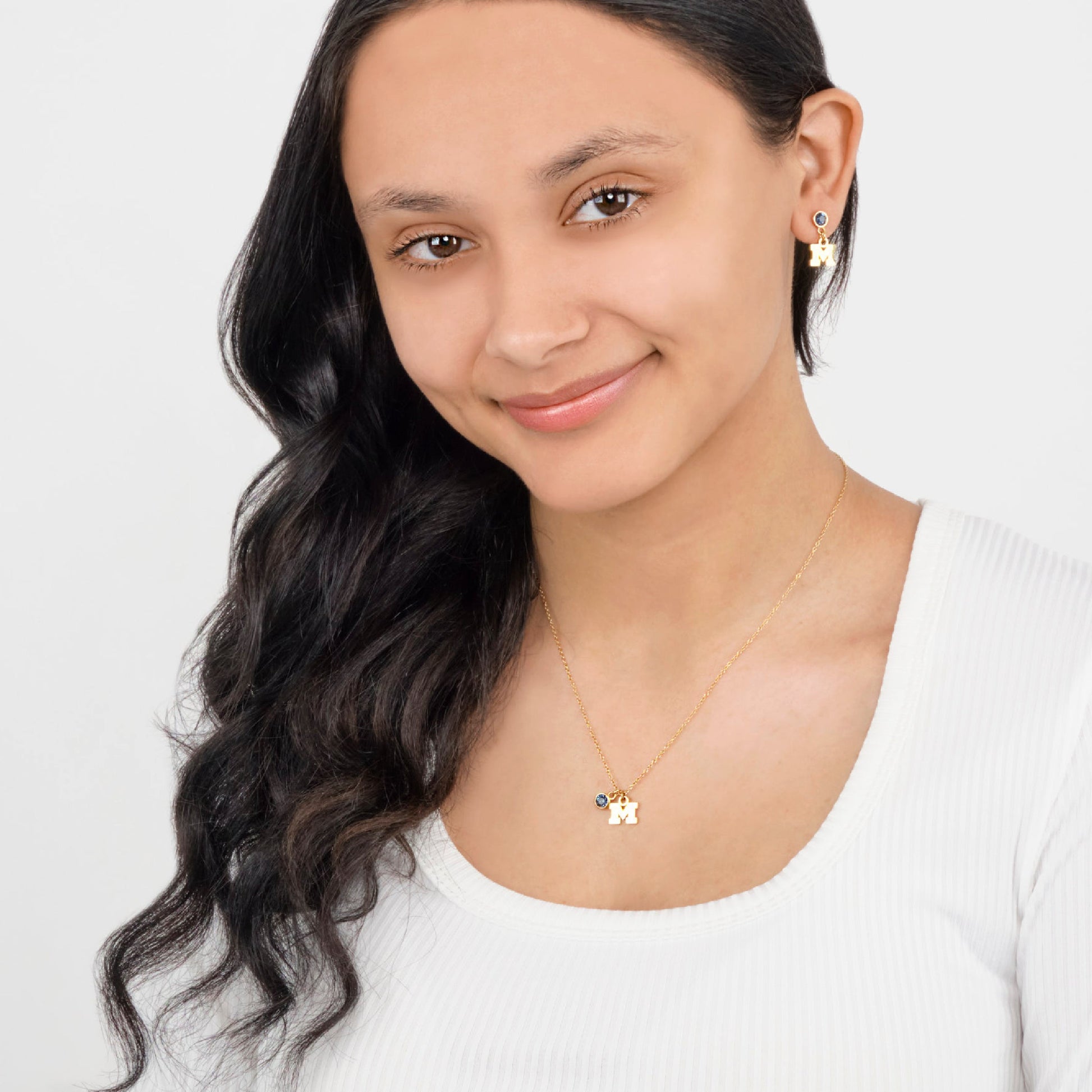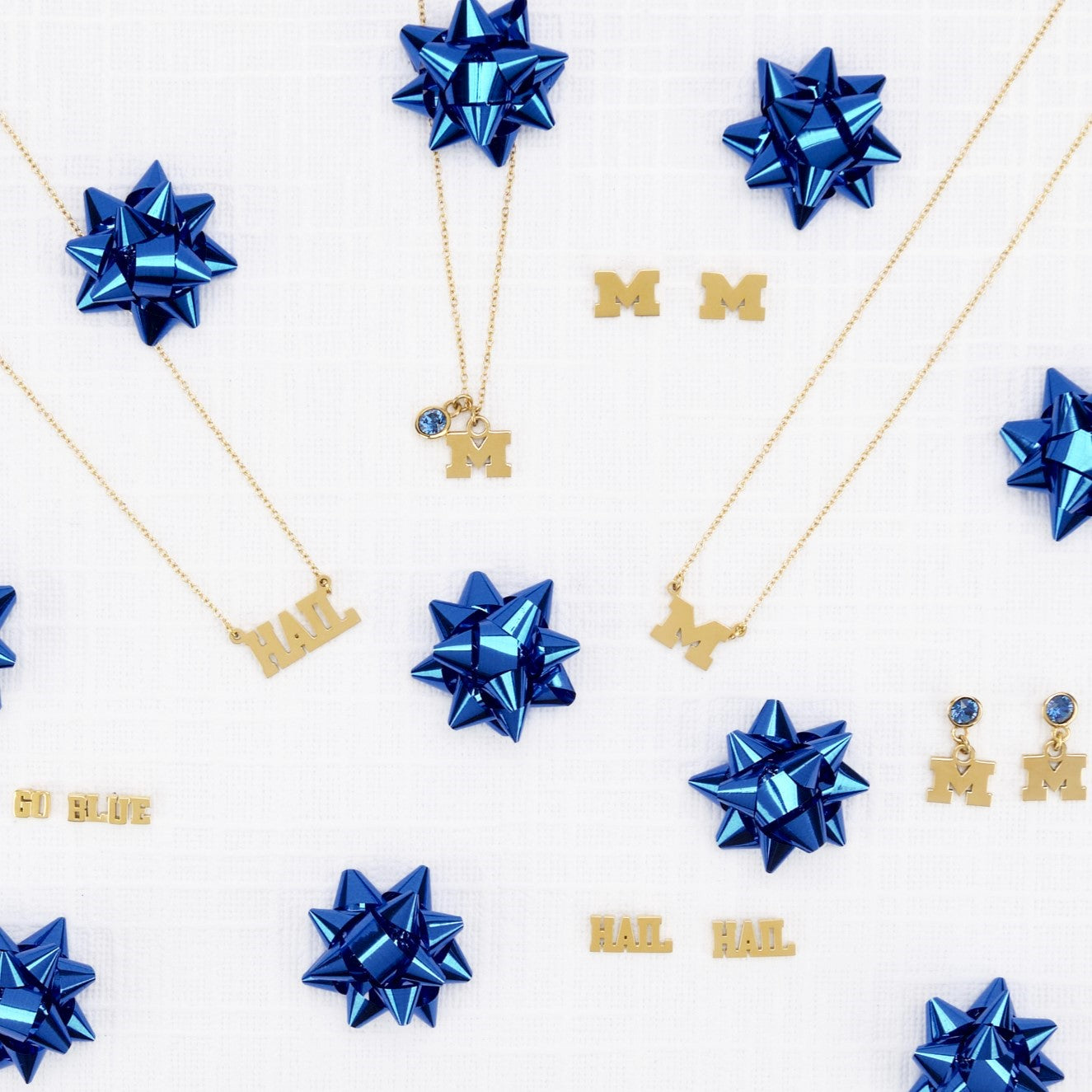 - Treasure Your Michigan Wolverines Spirit - This University of Michigan crystal necklace from Stone Armory is full of Wolverine Pride! Featuring a gold Block M charm pendant accented by a sparkling navy crystal, this Michigan necklace is just as unique as you. Go Blue!
