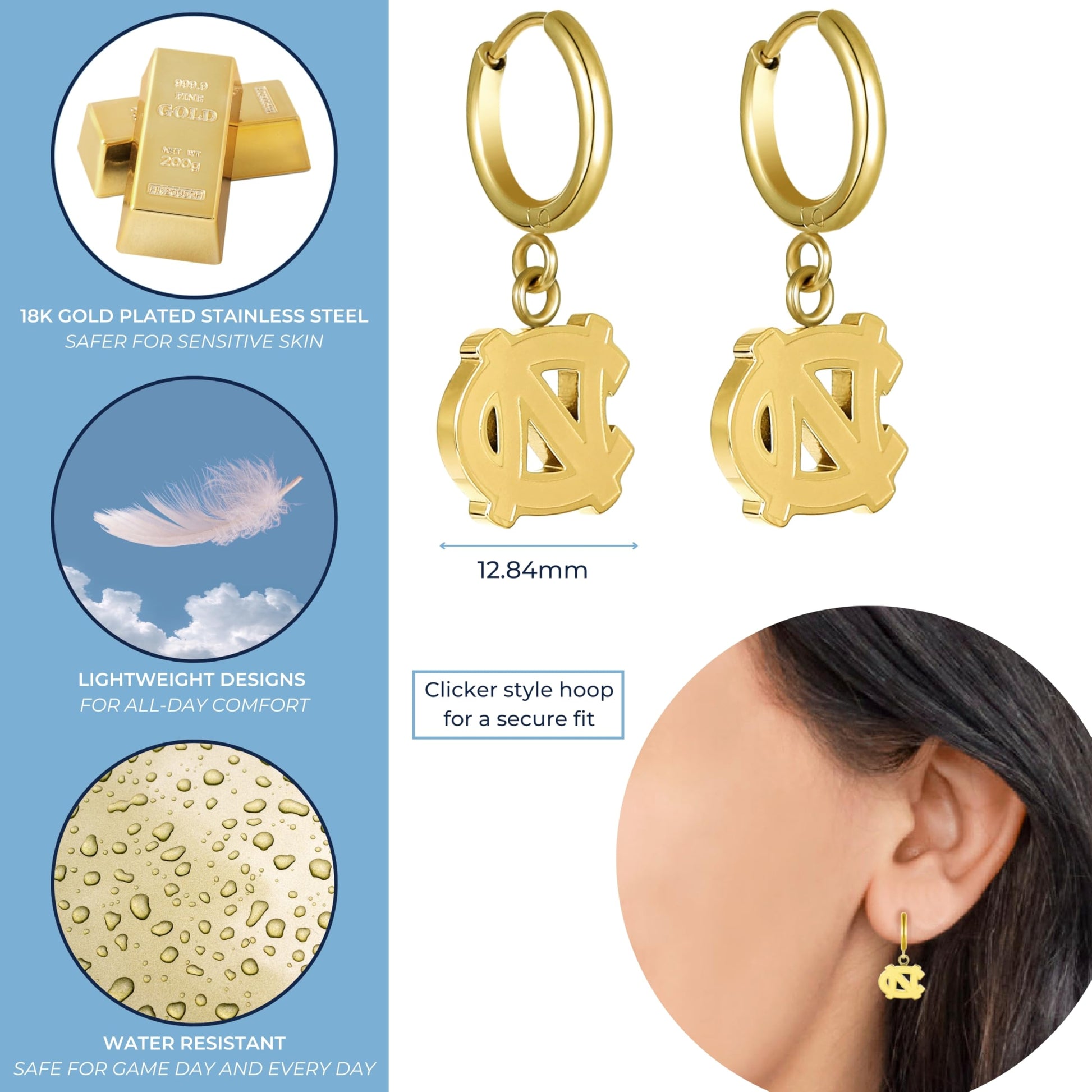 - The Ultimate Fit: These stainless steel North Carolina huggie hoop earrings provide all-day comfort and timeless style. Showcase your pride for the North Carolina Tar Heels with these elegant earrings, perfect for representing your school and team. Their delicate design makes them ideal for any occasion