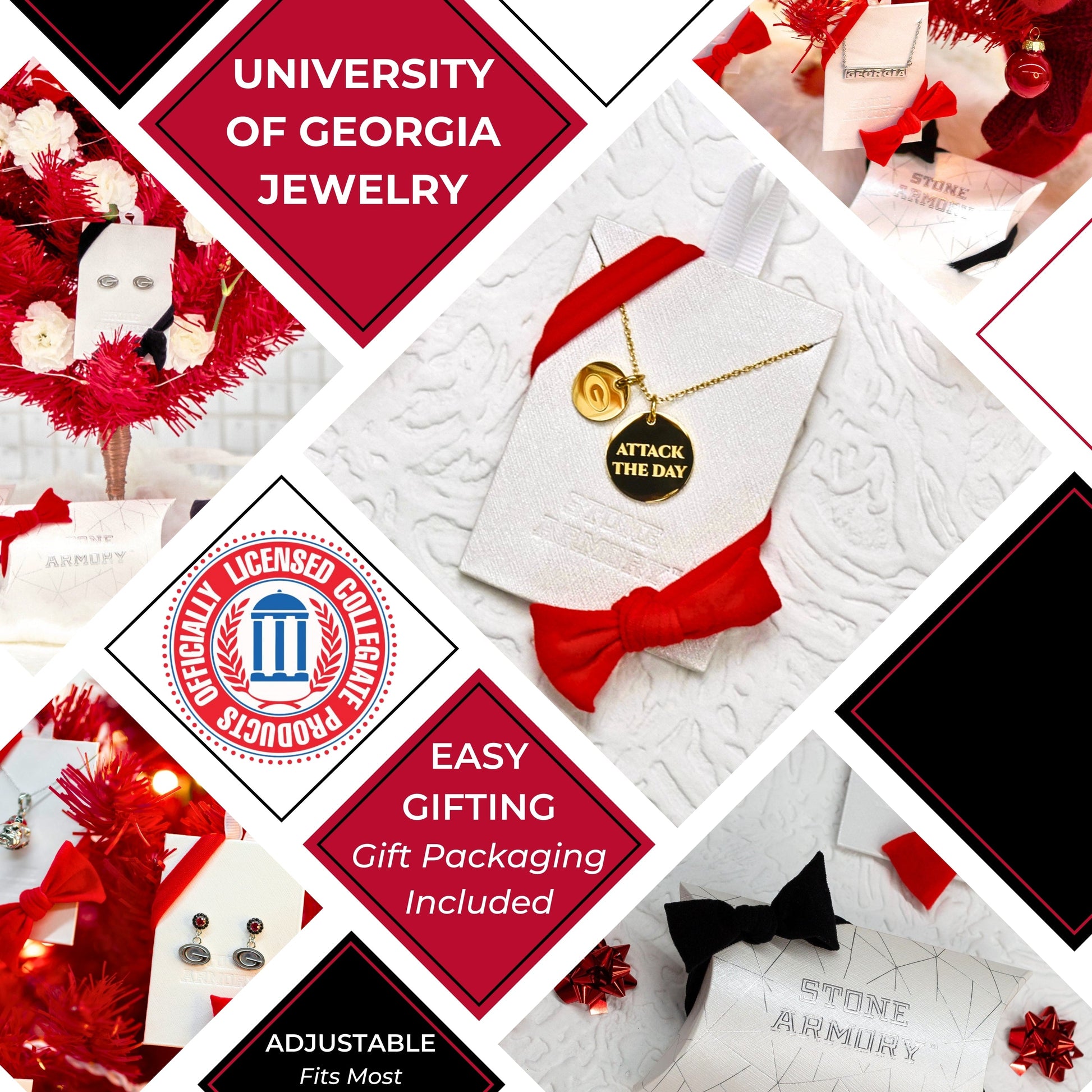 - Express Your Georgia Bulldogs Spirit Every Day: This officially licensed Stone Armory University of Georgia necklace features 18K gold-plated pendants engraved with the iconic Georgia G and the mantra 'Attack the Day.' Designed for both casual and game-day wear, this adjustable necklace (16-20 inches) makes the perfect gift for Georgia fans, students, and alumni