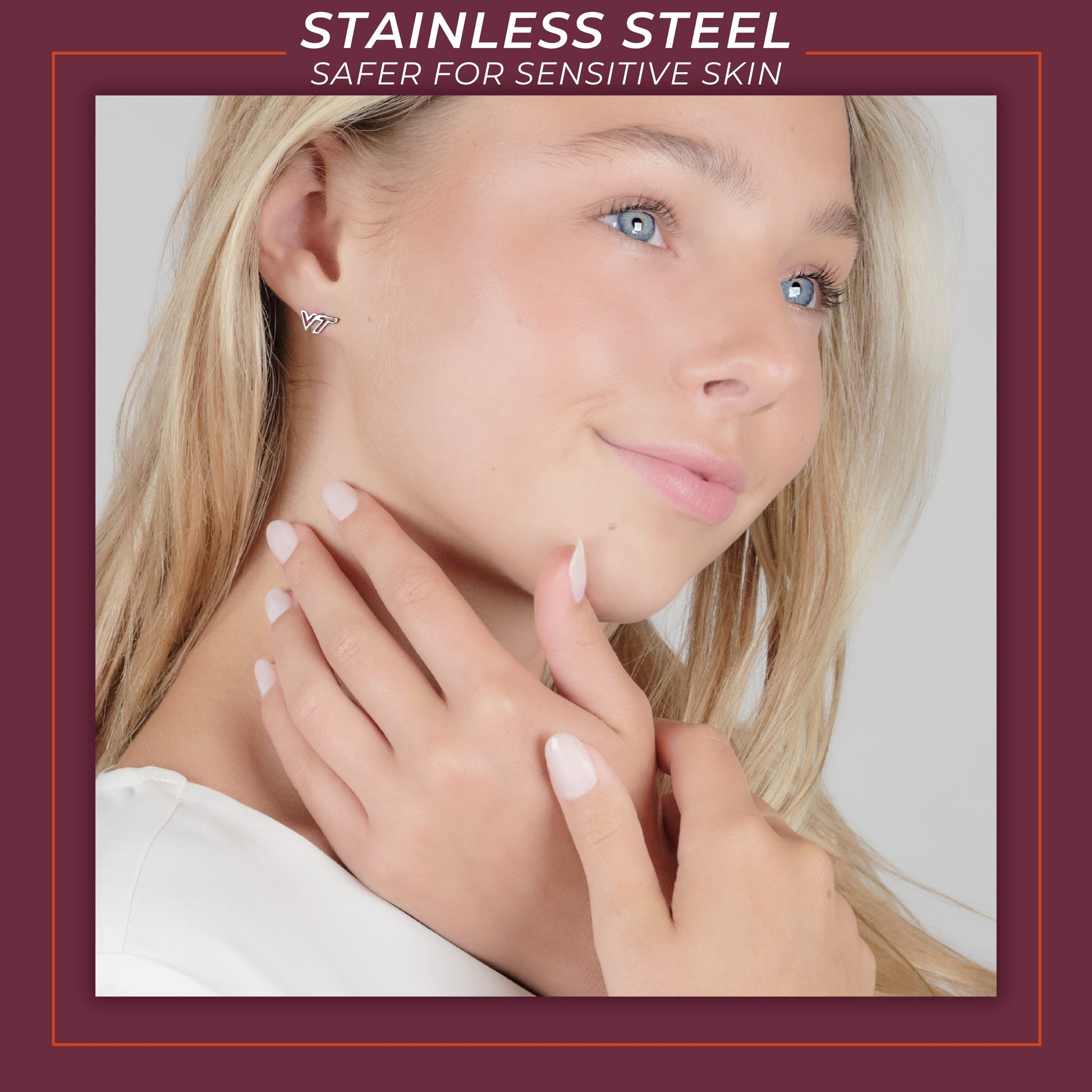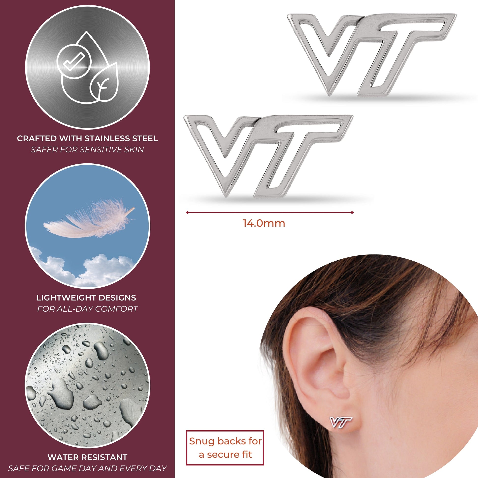 Stone Armory's Virginia Tech Cutout VT stud earrings are here! Gear up for the game with our beautifully designed Virginia Tech Hokies earrings! Wear them to your next tailgate or around town to show off your Virginia Polytechnic Institute pride. These stainless steel VT earrings would also make the perfect Virginia Tech gift for your favorite Virginia Tech Hokies fan! Stone Armory's VT jewelry is made of stainless steel and carefully designed, making these NCAA Virginia Tech stud earrings the perfect gift to celebrate Virginia Tech graduation, birthdays, Mother's Day, first day of school, the first game, or for everyday fan wear. Thank you for supporting our small business!