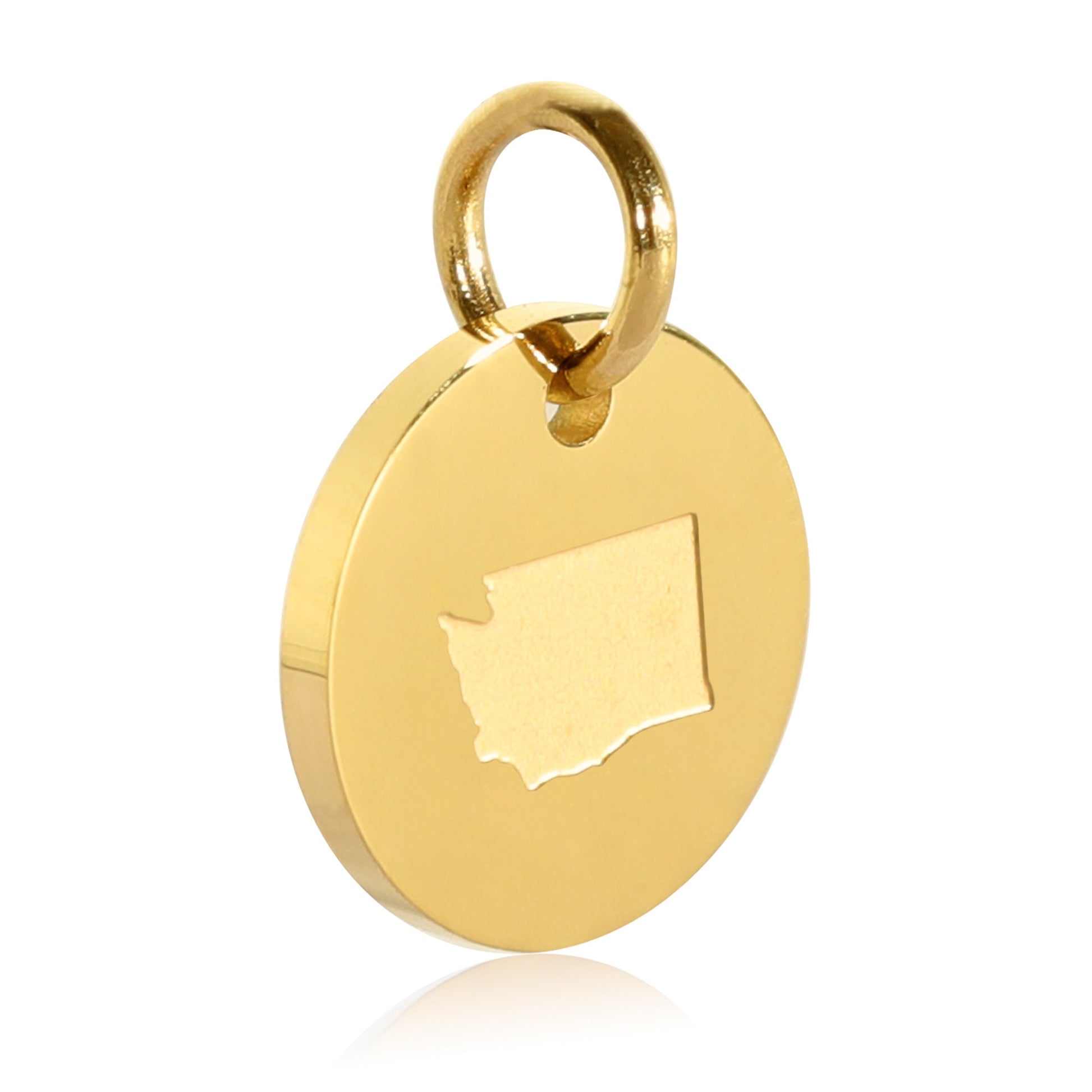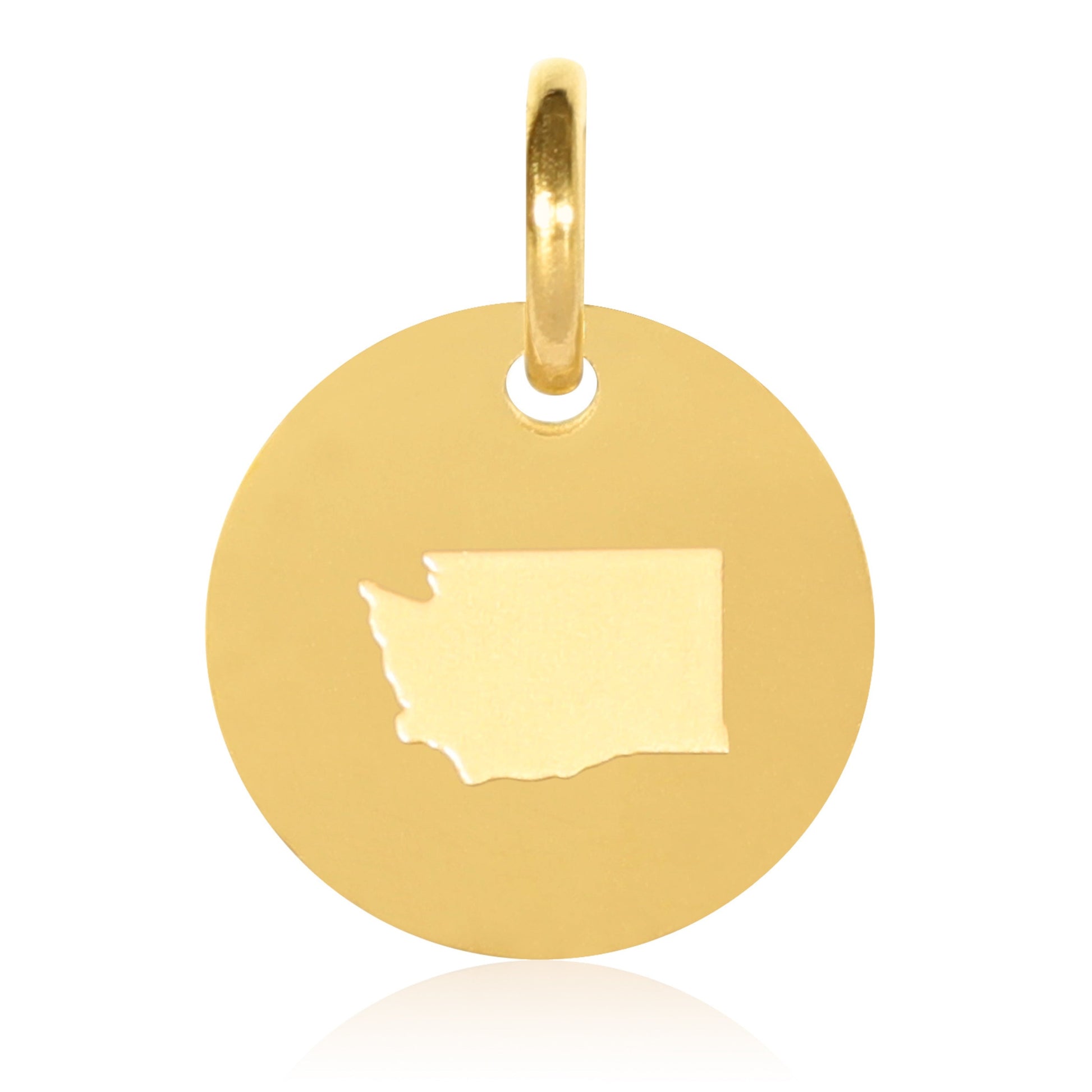Washington Map Engraved Charm Necklace - 18K Gold Plate