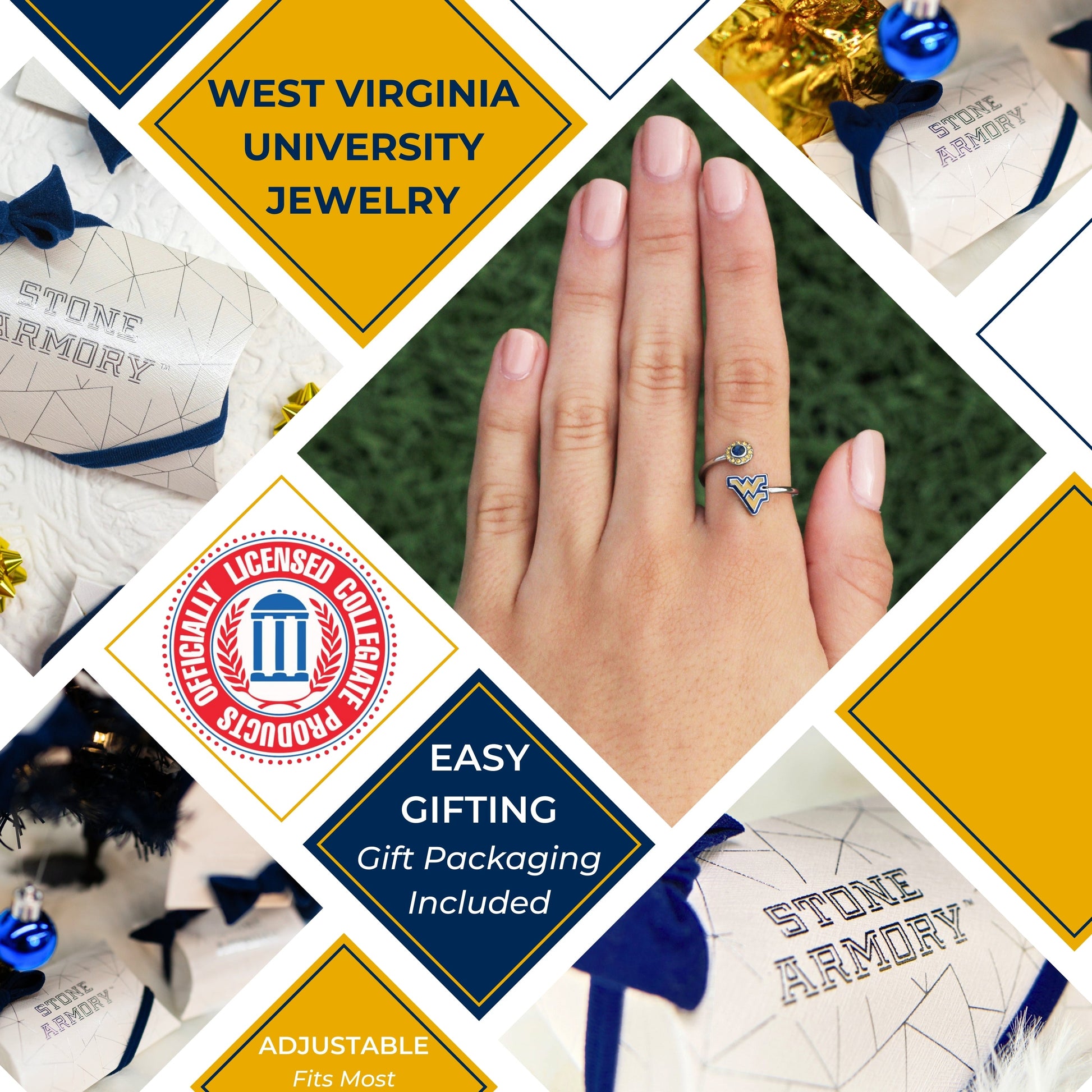 - 💙 TREASURE YOUR West Virginia Mountaineers SPIRIT: This Stone Armory West Virginia University ring is officially licensed. A classic West Virginia ring with blue and gold crystals, to show off your WVU Mountaineers pride.