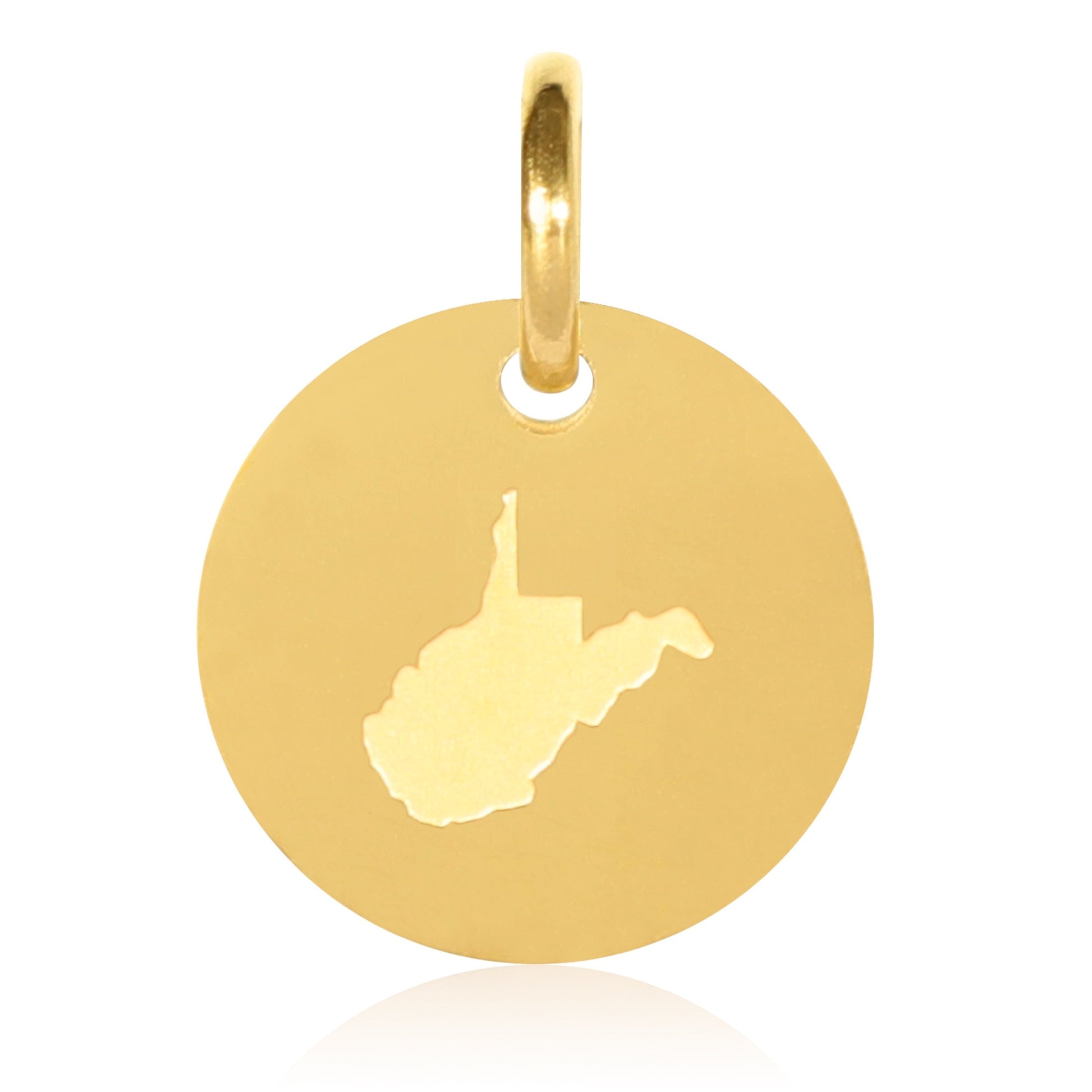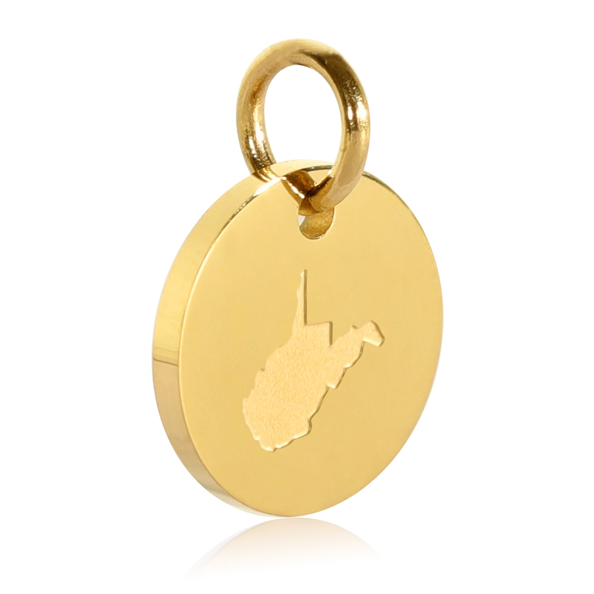 West Virginia Map Engraved Charm Necklace - 18K Gold Plate