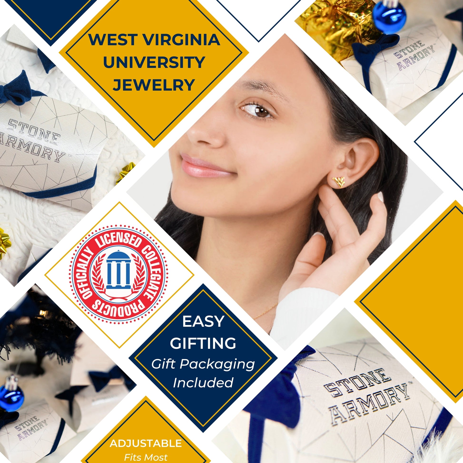 - Fast Shipping and Guarantee - These WVU small stud earrings ship within 24 business hours. Stone Armory guarantees you will love your West Virginia University apparel! Free returns and exchanges.