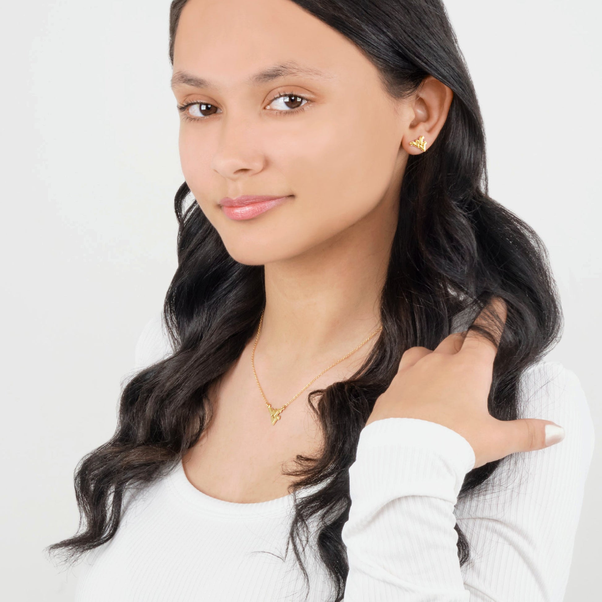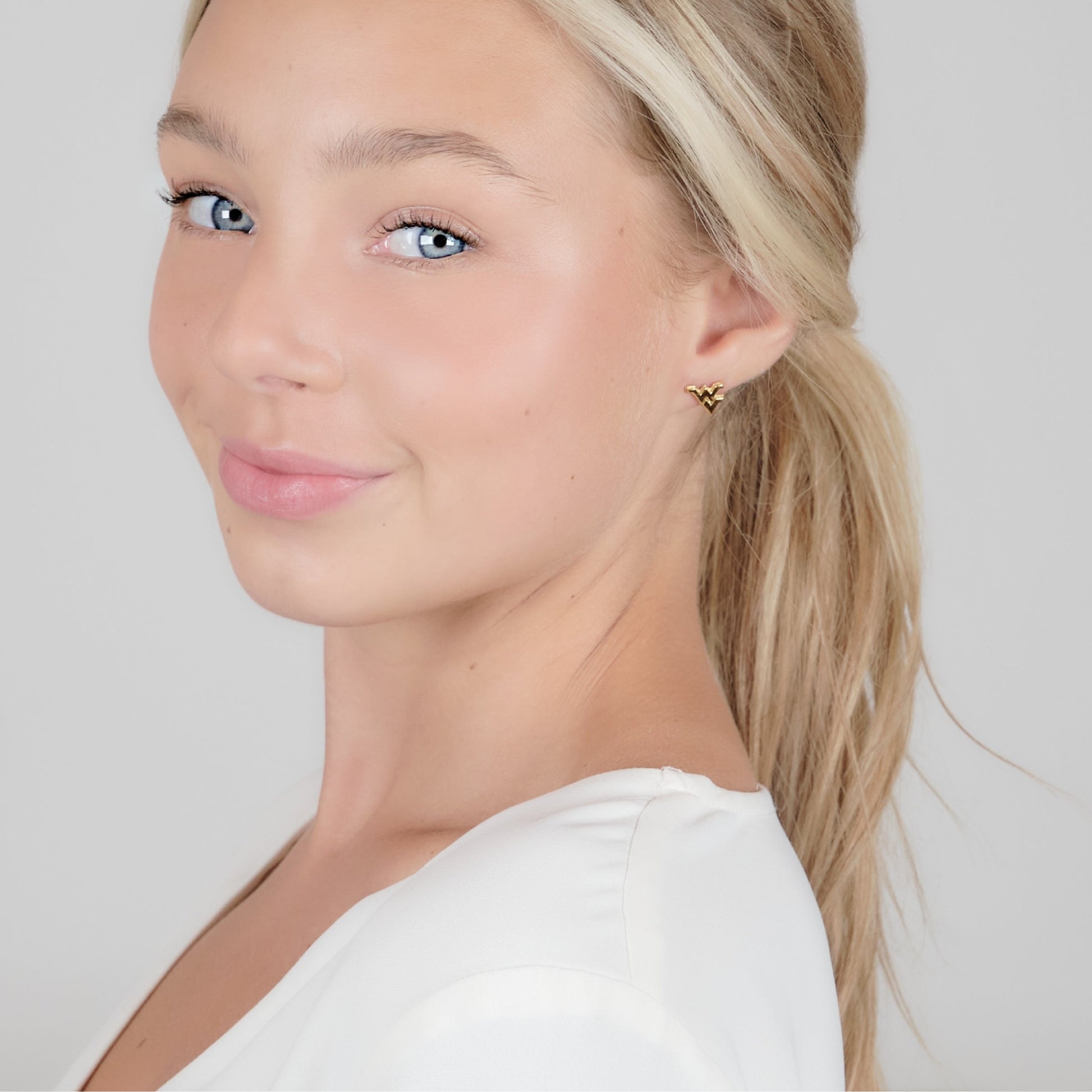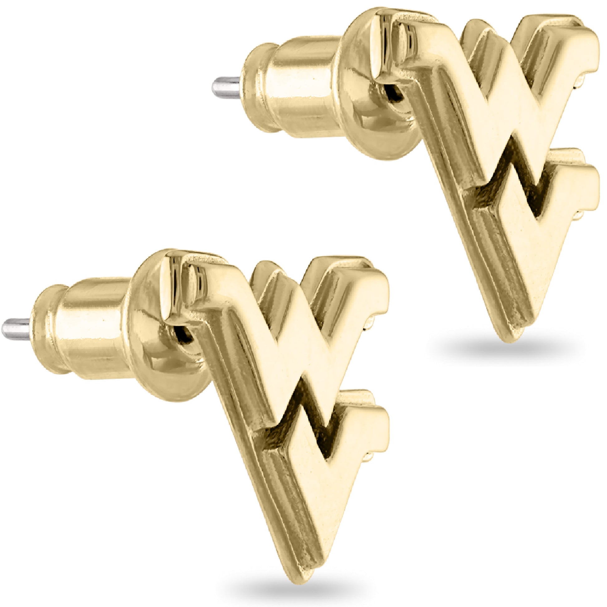 - Treasure Your West Virginia Mountaineer Spirit - These Stone Armory WVU gold plated earrings for women are full of Mountaineer pride! Featuring a gold plated Flying WV design, these classic dainty gold earrings are just as unique as you. Let's Go Mountaineers!
