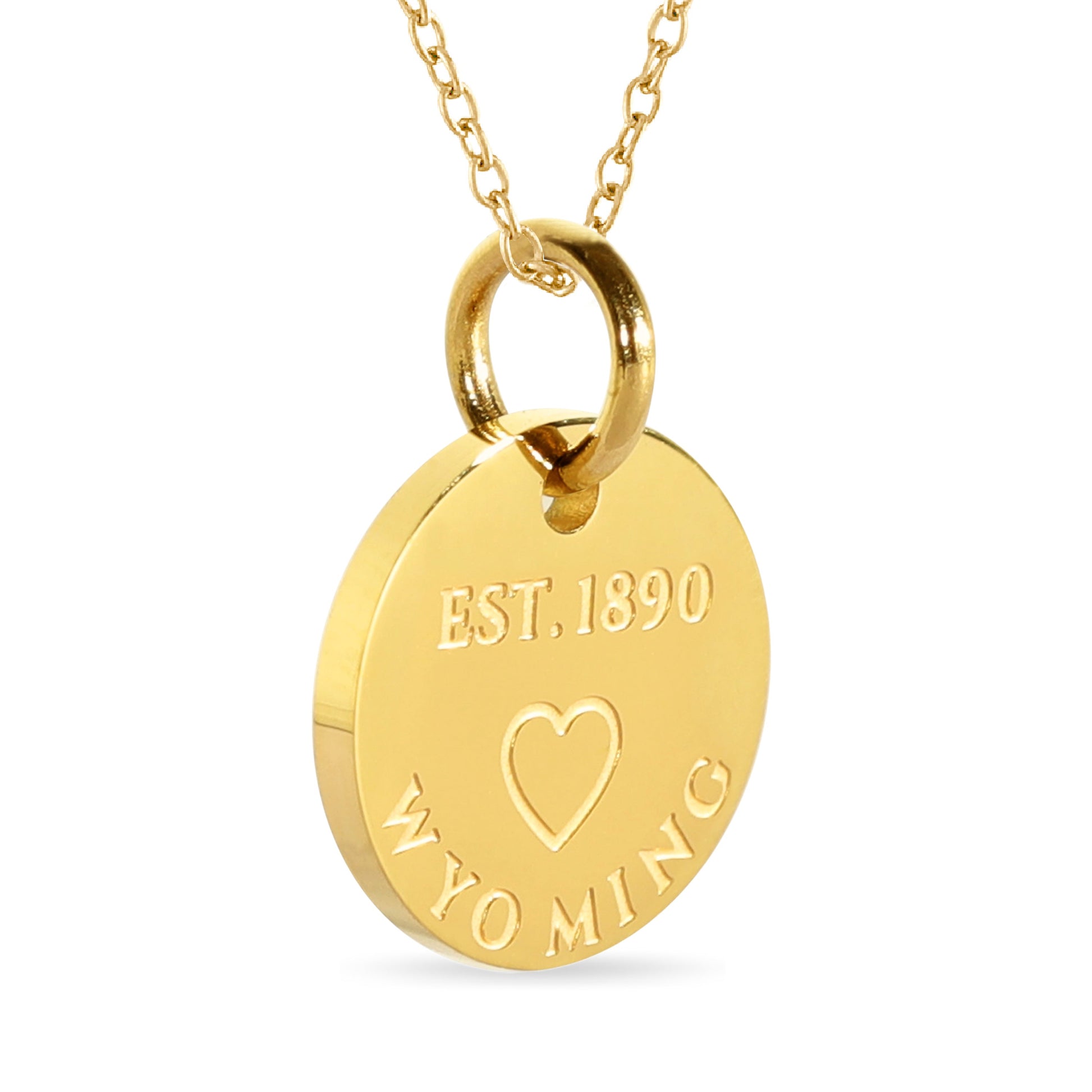 Wyoming Map Engraved Charm Necklace - 18K Gold Plate