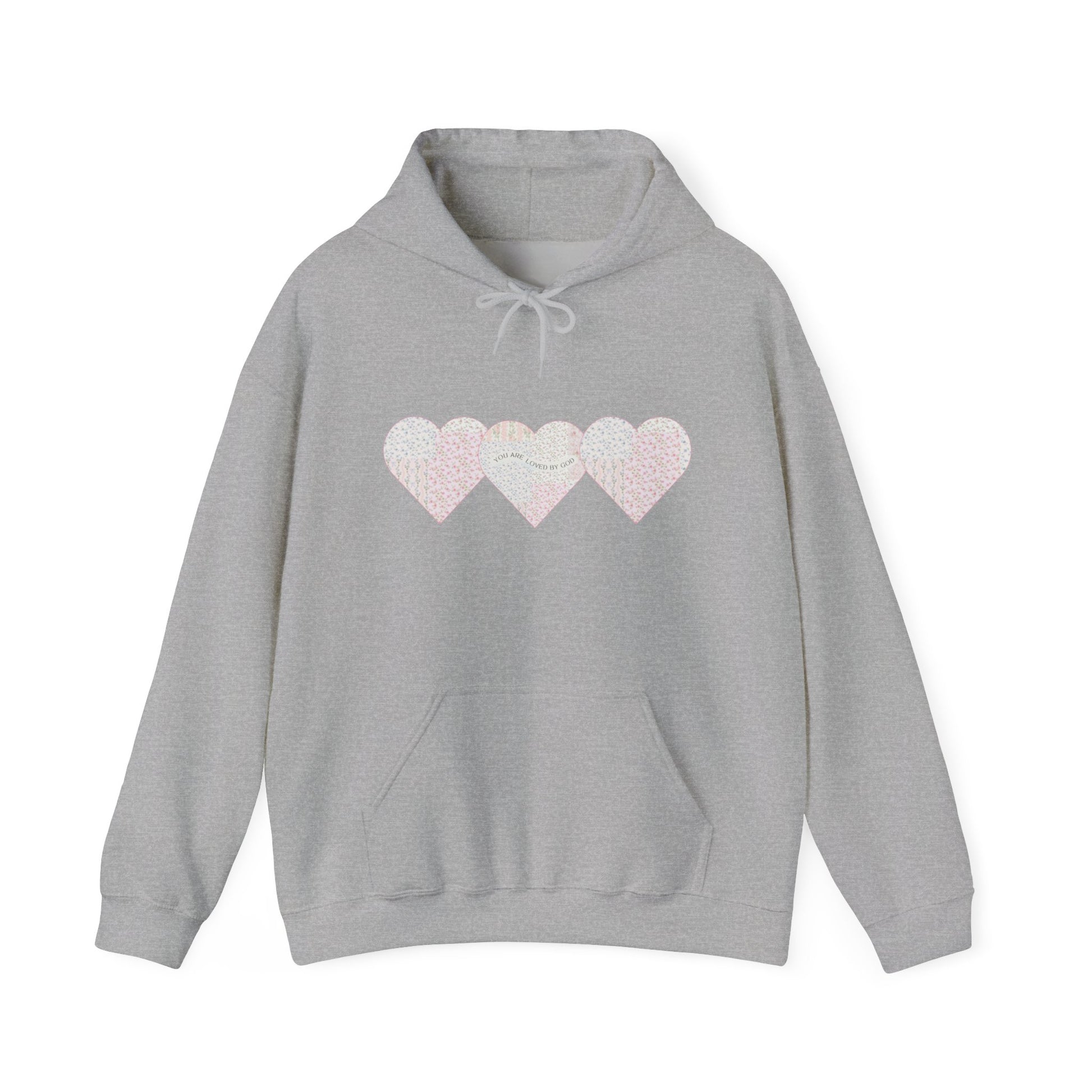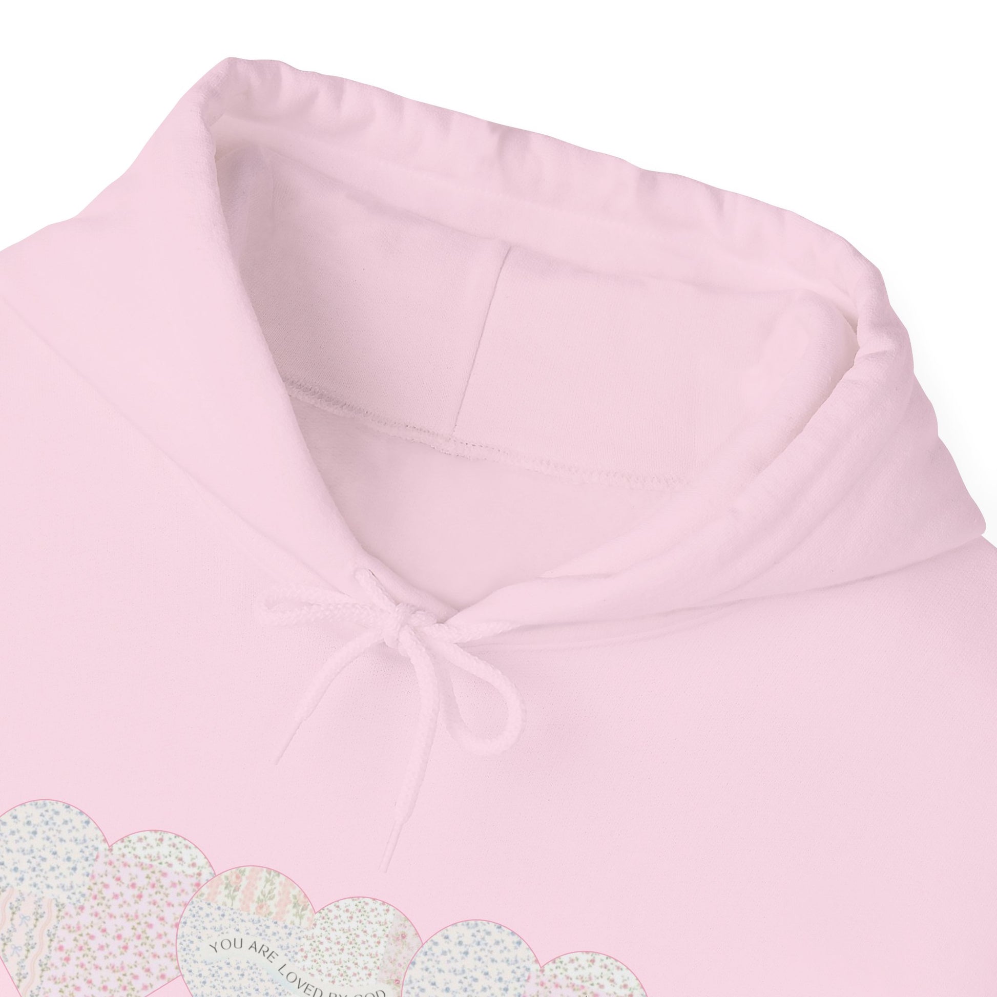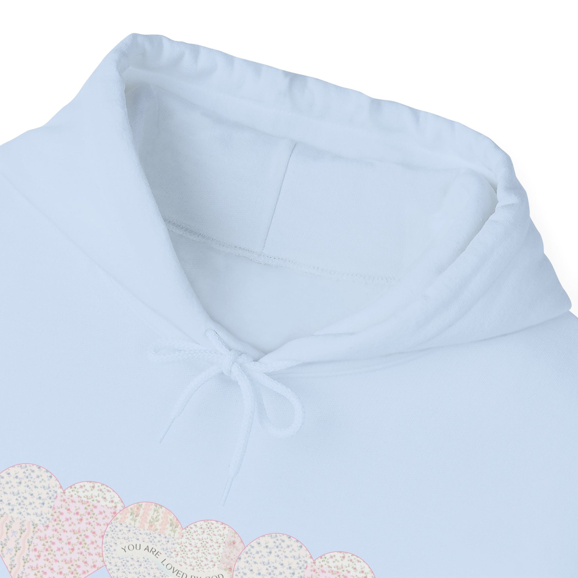 You Are Loved By God Heartfelt Hoodie with Patchwork Hearts Design