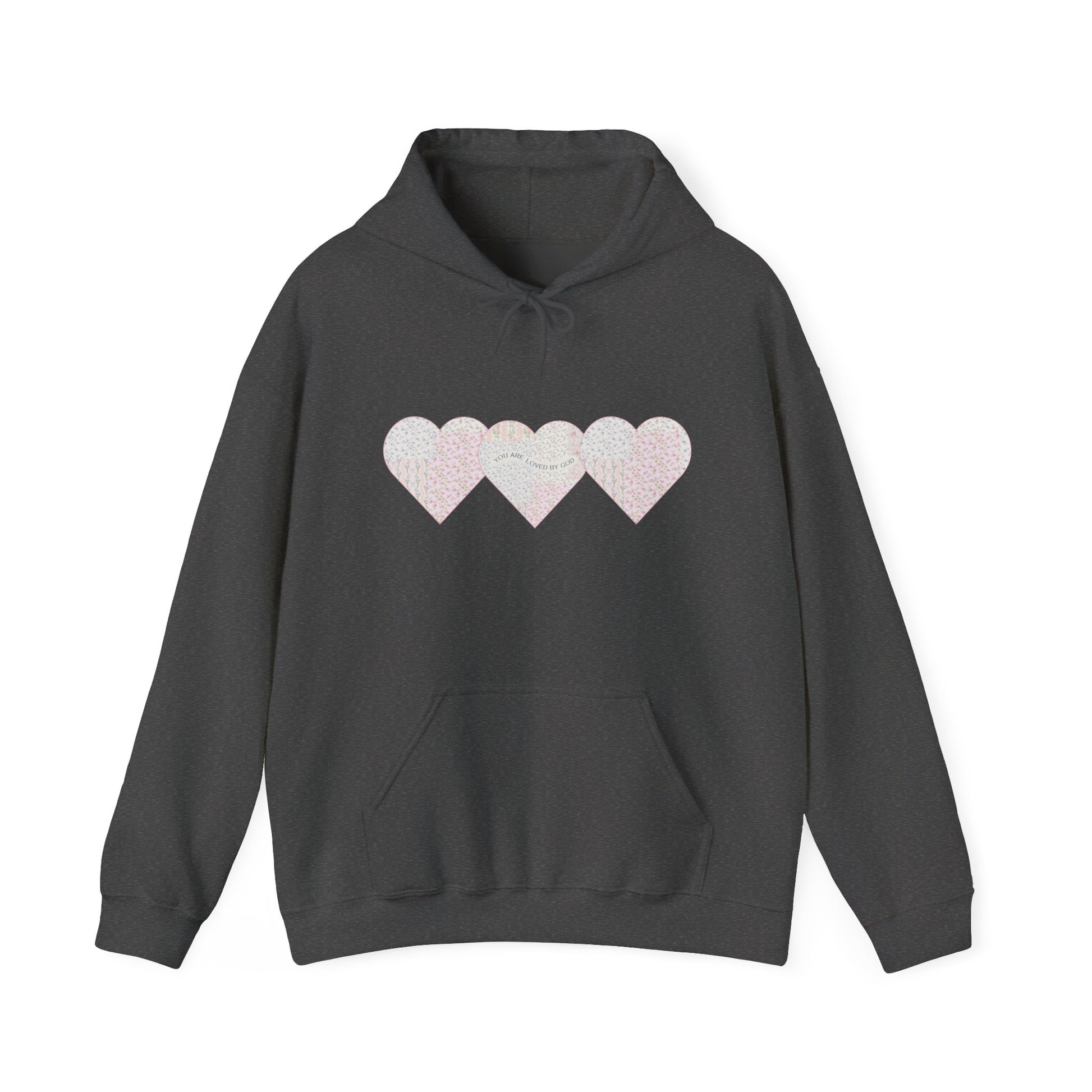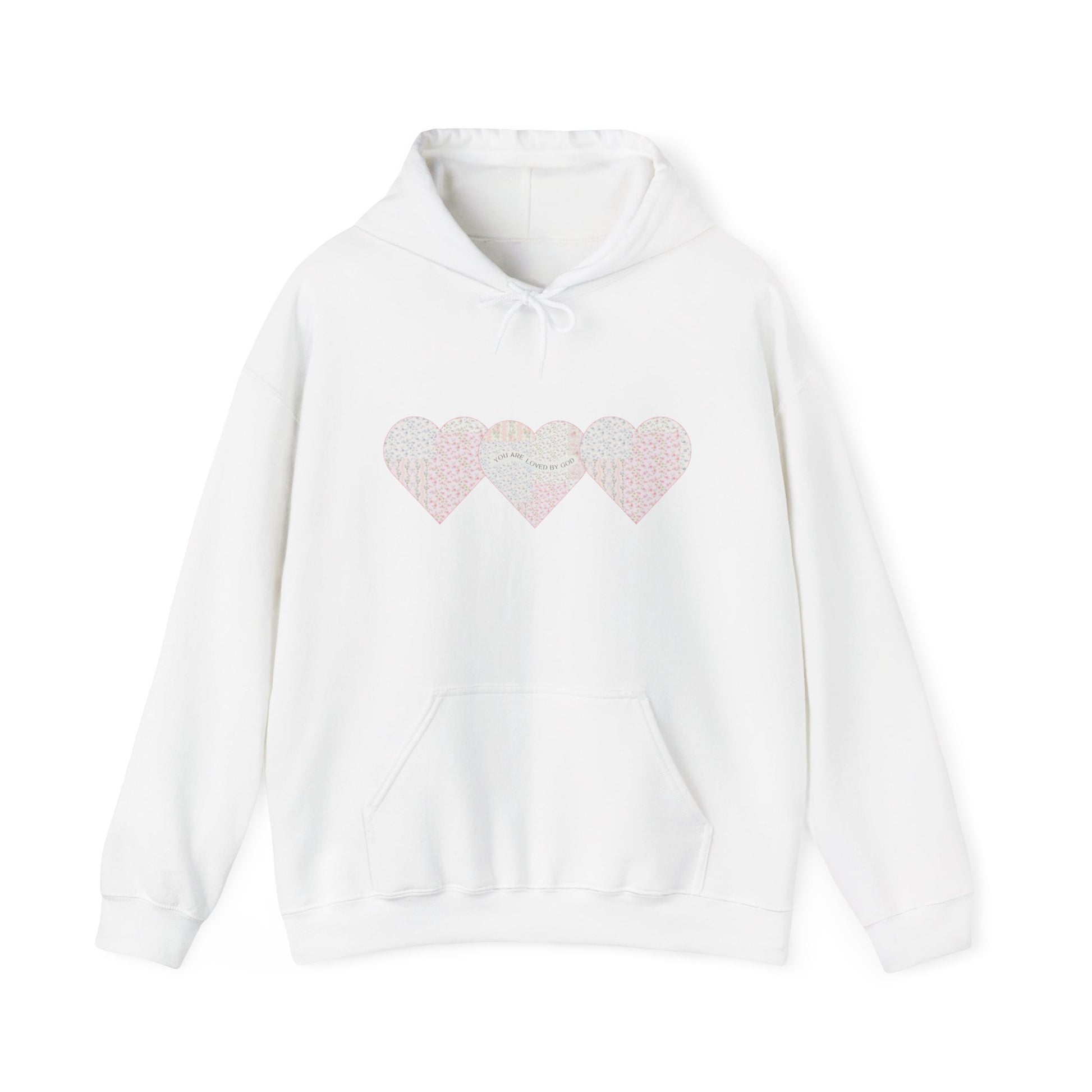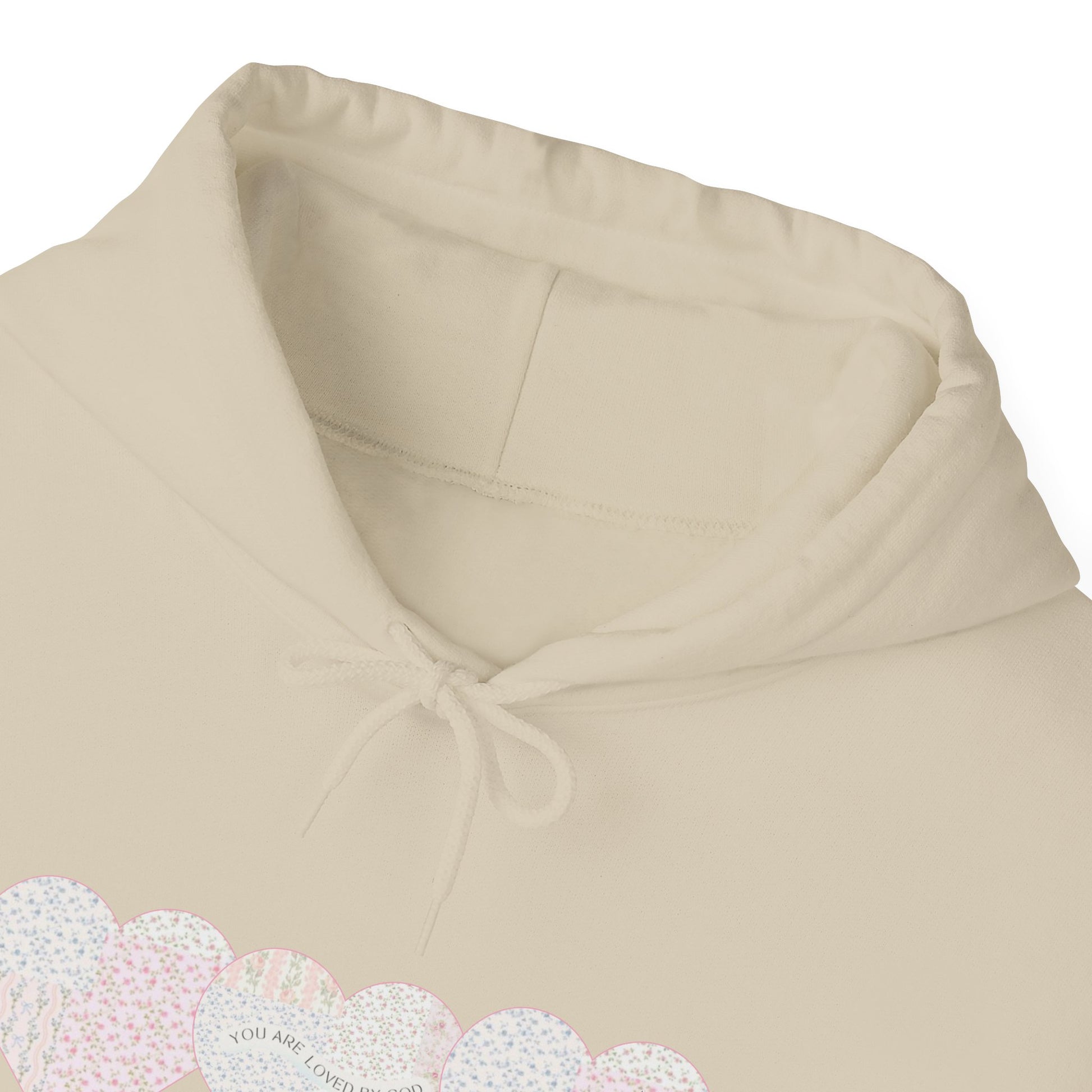 You Are Loved By God Heartfelt Hoodie with Patchwork Hearts Design